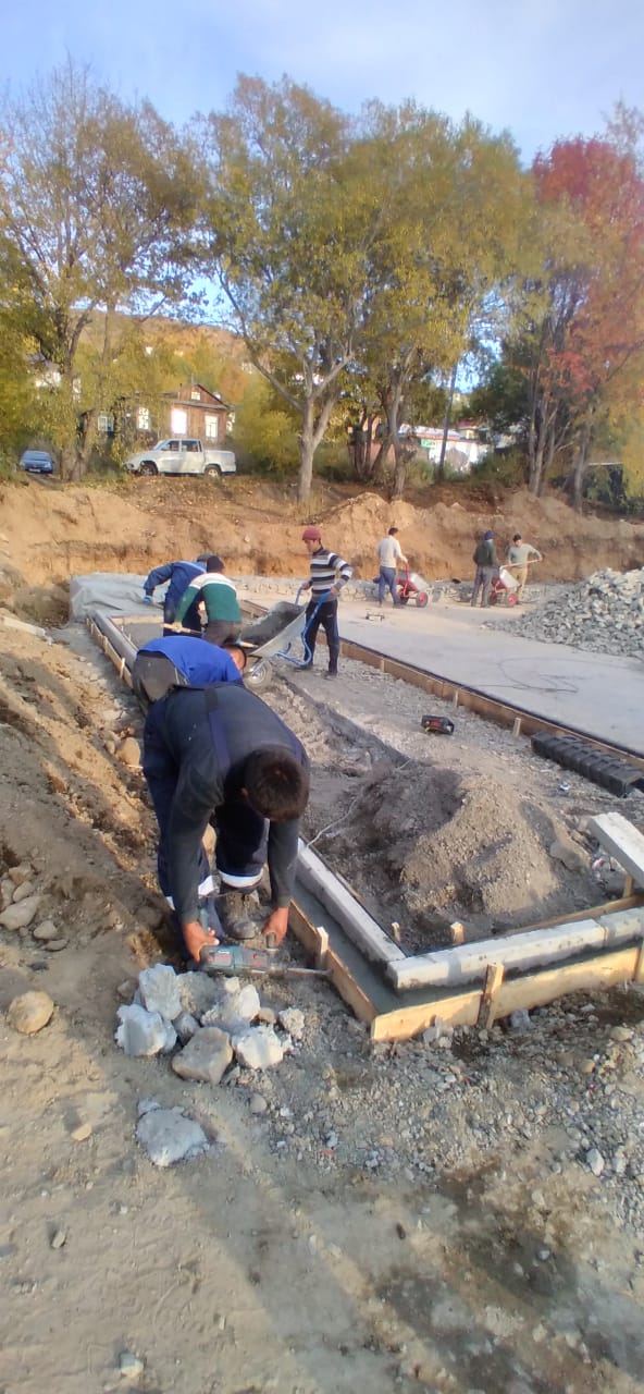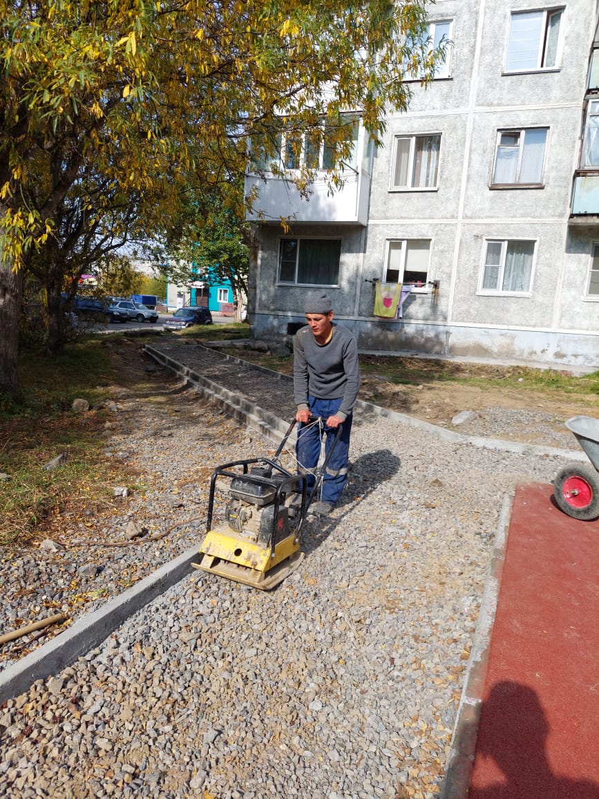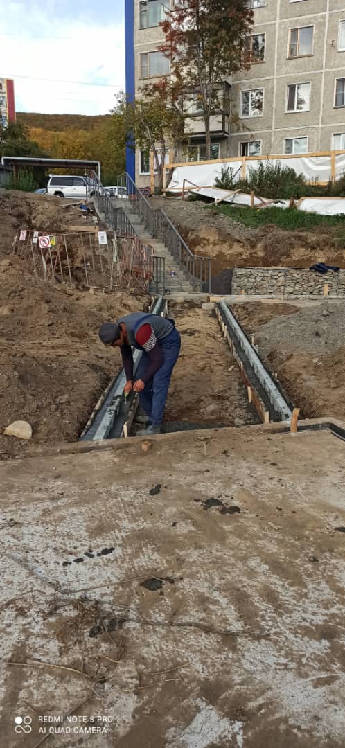 На фото: ул. Мишенная 116/1 – продолжение работ по установке габионов, бетонирование бордюрного камня под тротуарработы также продолжаются на ул. Океанская, 78, пр. рыбаков, 22, ул. Кроноцкая, 8, Ак. Королева, 21, ул. Николаевой-Терешковой, 2 – выемка грунта, ул. Корякская – укладка покрытия, пр. Победы, 43 – подготовка основания под тротуарную плитку, ул. Абеля, 15, 17, 19 – укладка тротуарной плитки, ул. Автомобилистов, 33 – укладка покрытия, ул. Циолковского – планировка щебня.