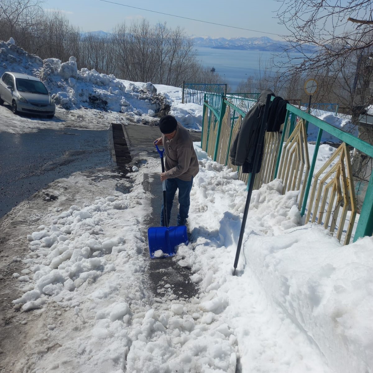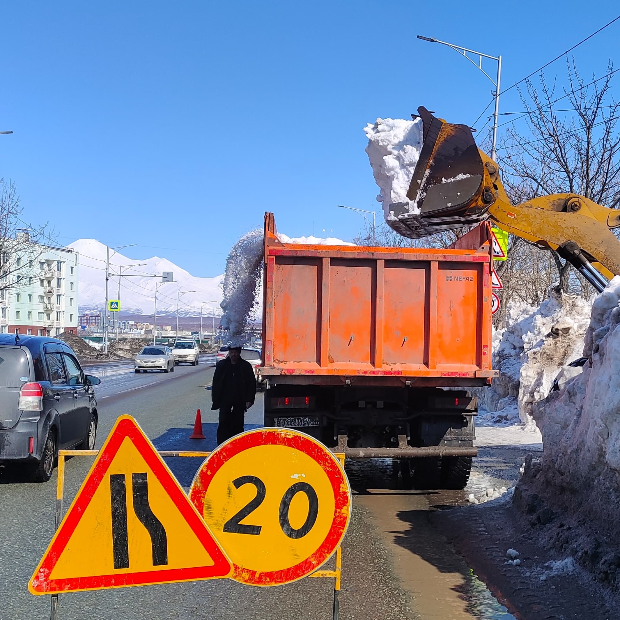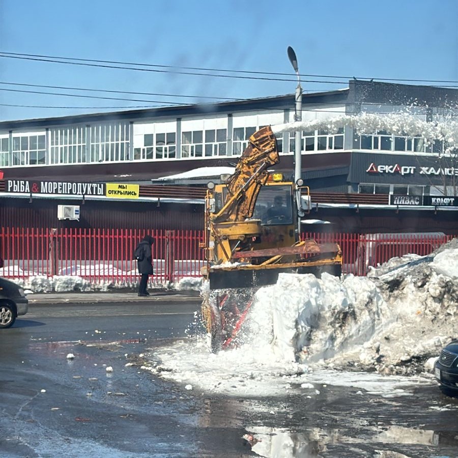 Работа по снегоочистке — механизированная и с помощью бригад ручного труда — продолжается в городе.