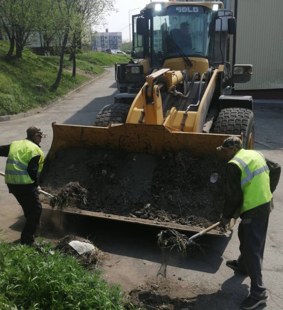 Выполняется уборка мусора и песка.