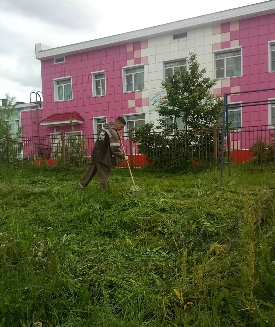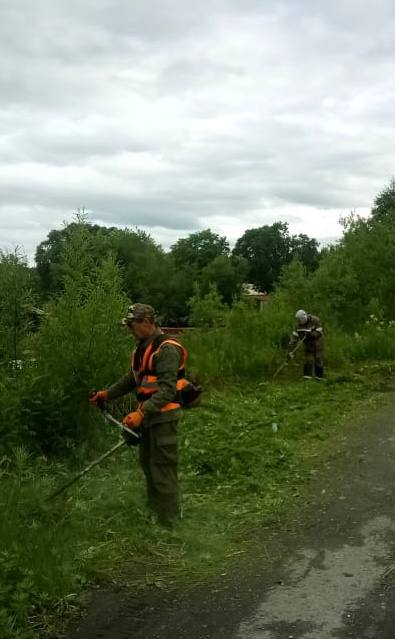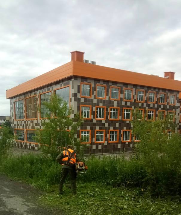 Осуществляется покос травы, уборка мусора, песка и веток.