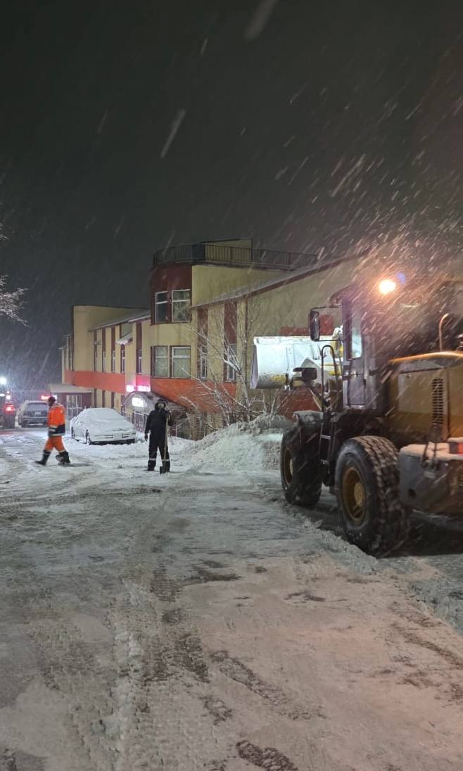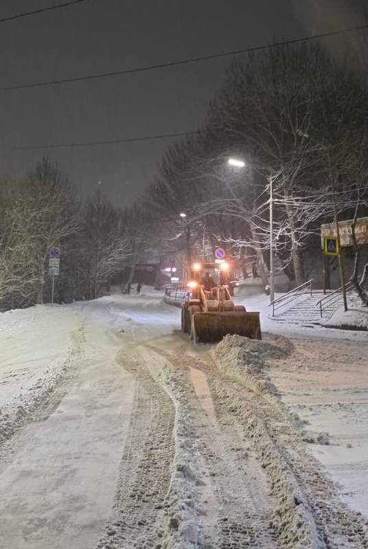 Подрядные организации работали в ночную смену и рано утром – вели расчистку магистралей, внутриквартальных проездов и тротуаров. Обрабатывали территории противогололедными материалами.