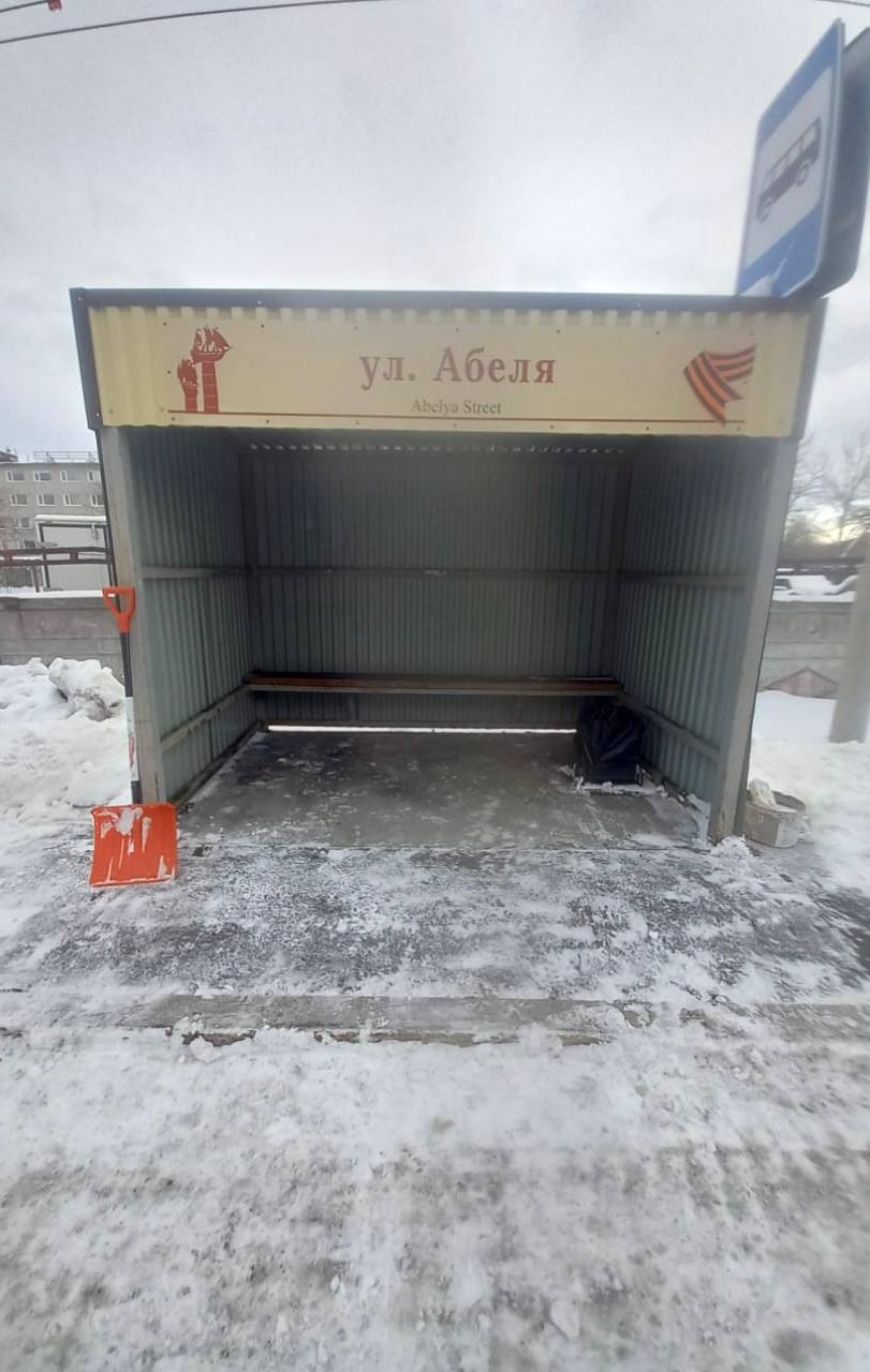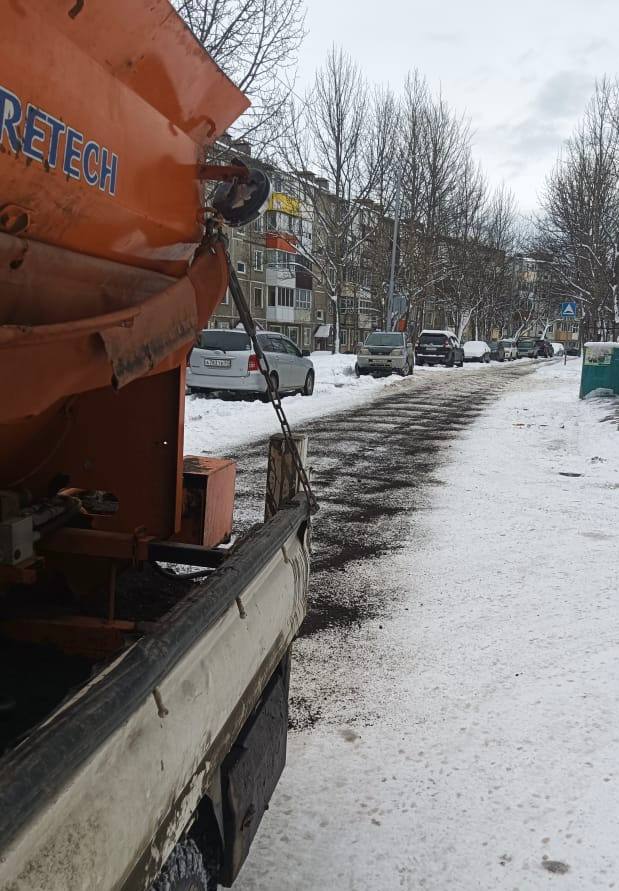 Бригады ручного труда проводят очистку пешеходных переходов, тротуаров и автобусных остановок от наледи и снега, а также обработку противогололедными материалами.