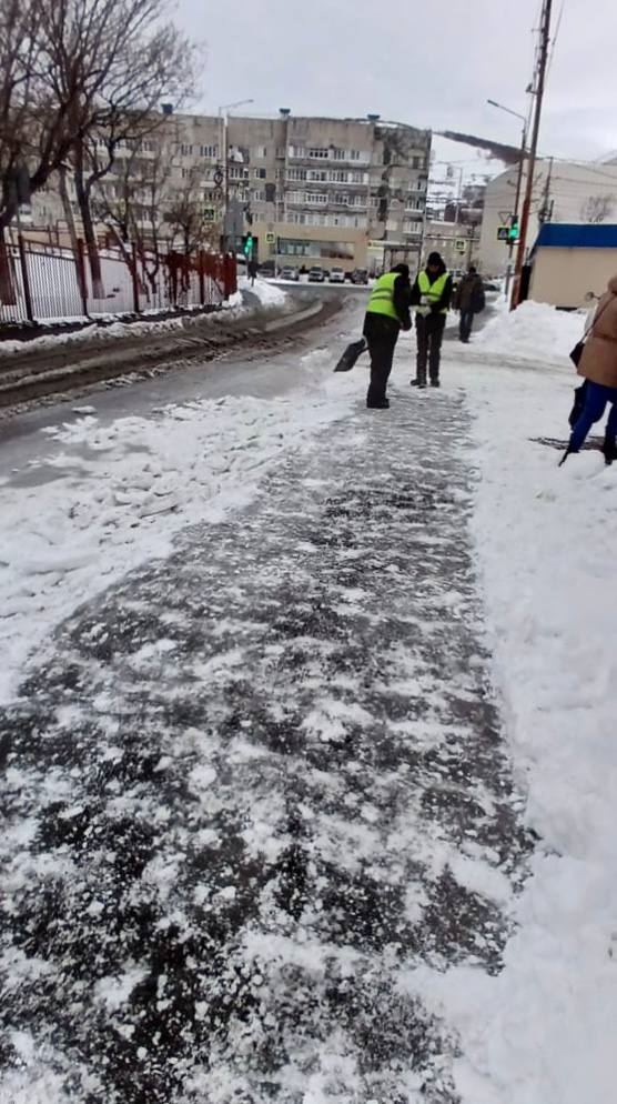 В Петропавловске-Камчатском дорожные службы продолжают ликвидацию последствий циклона.