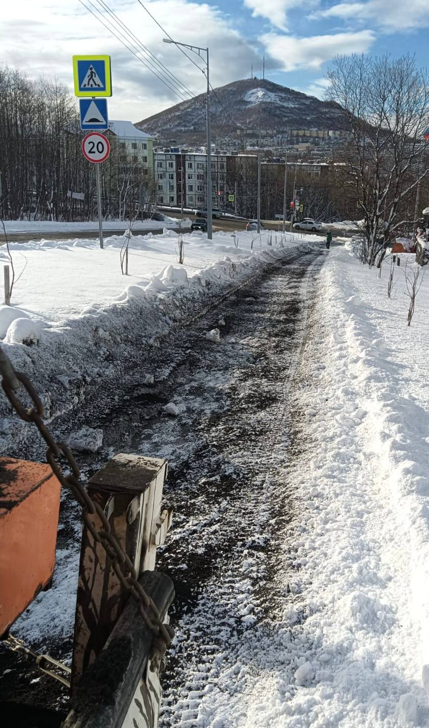 Также специализированная техника продолжает работы в отдаленных микрорайонах – Кирпичики, Нагорный, Долиновка, Халактырка, Тундровый, Чапаевка, Радыгина.