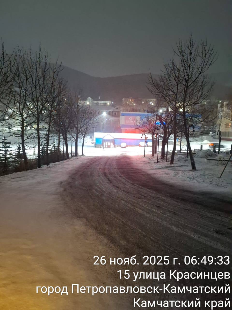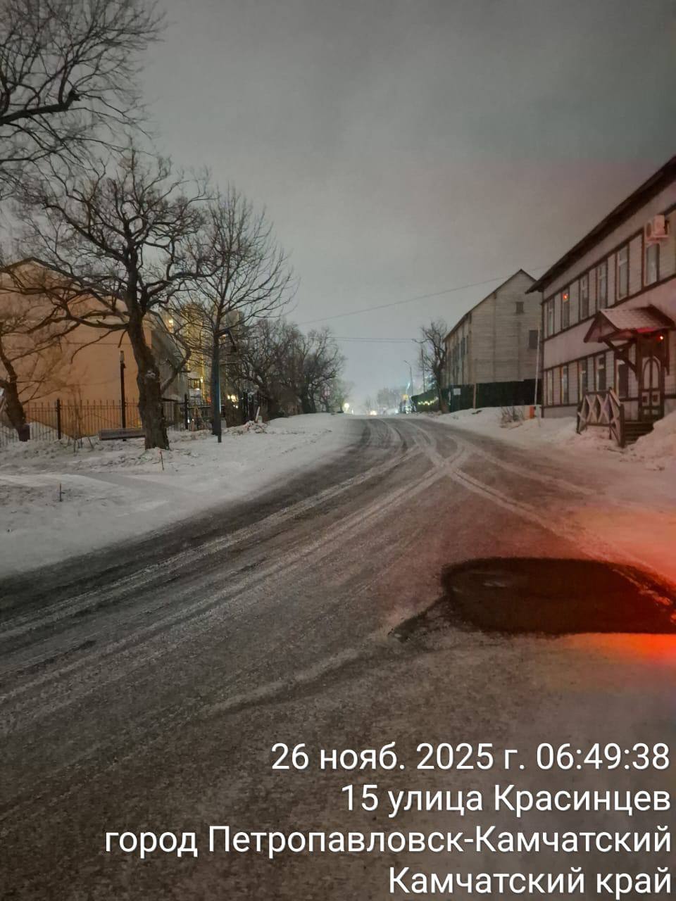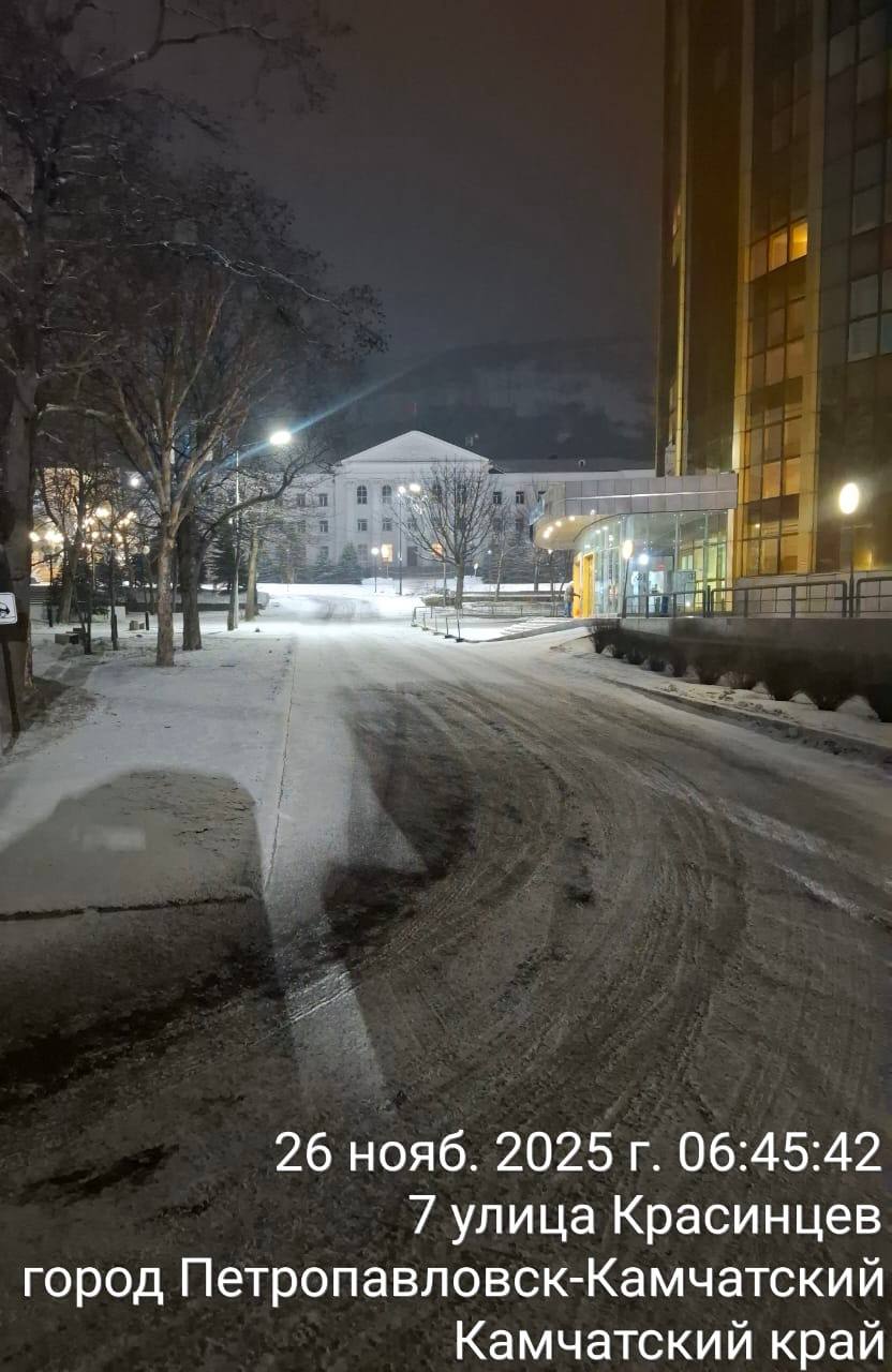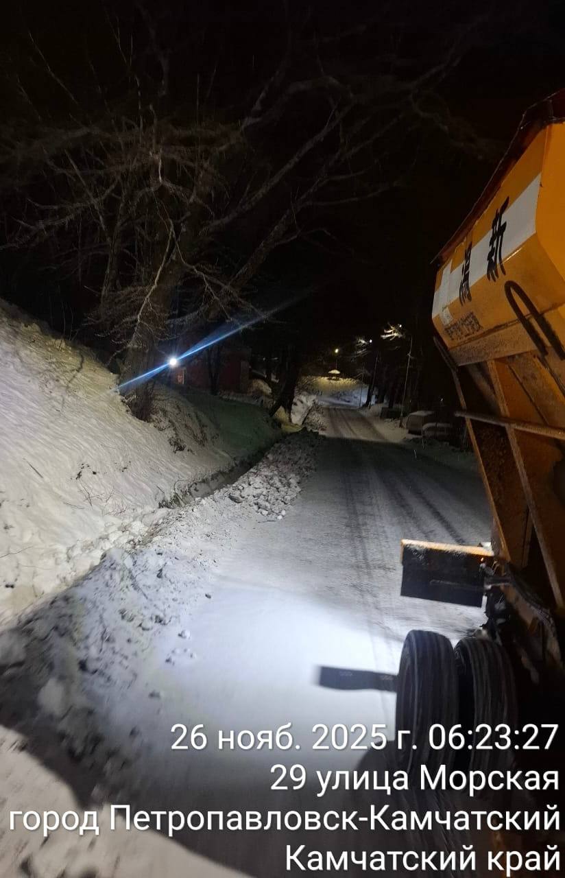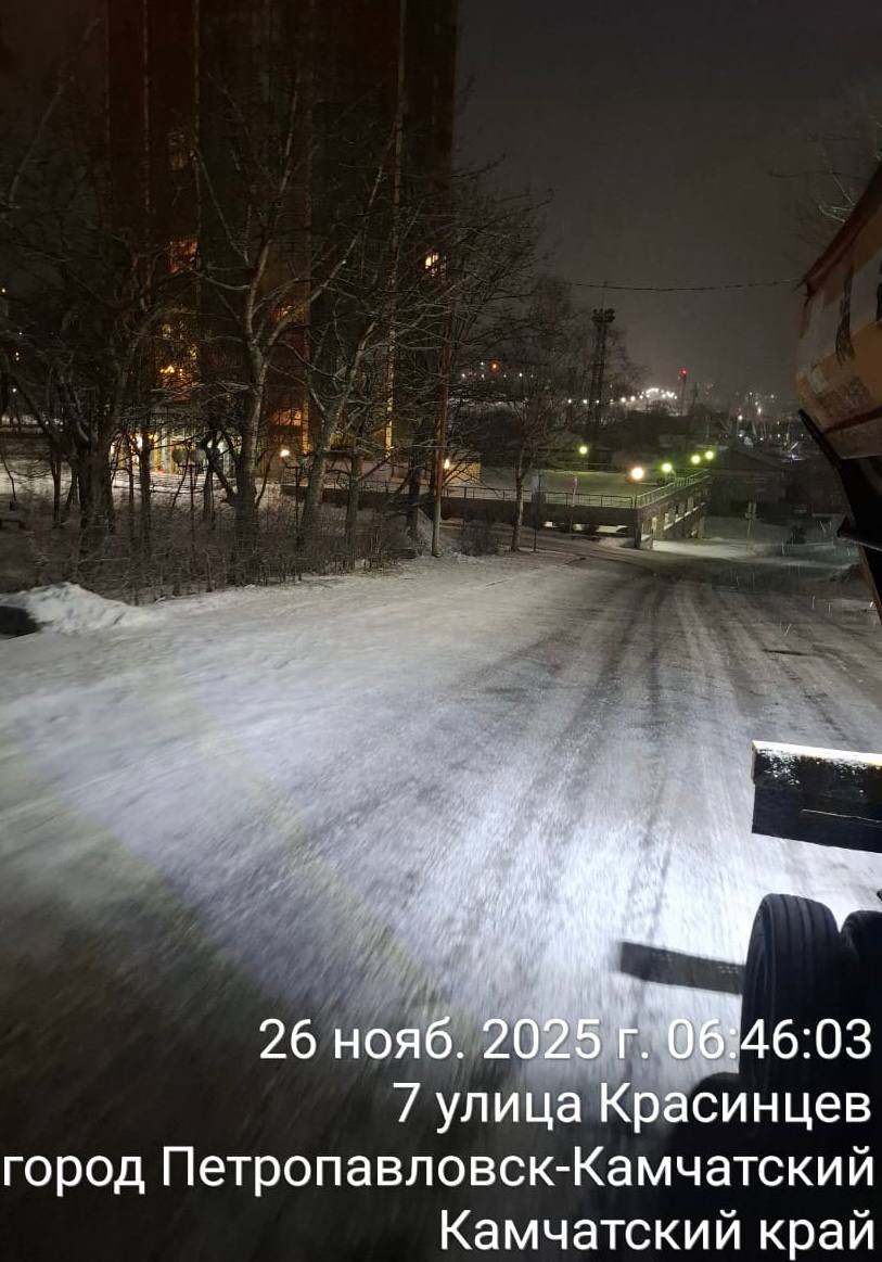 В Петропавловске-Камчатском дорожные службы работают с раннего утра.