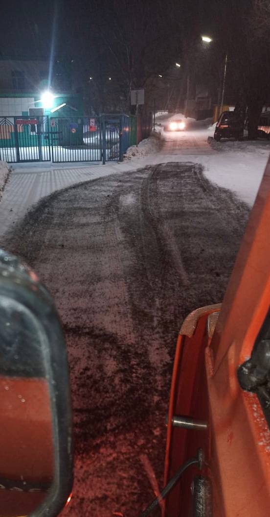 Техника работает на главных дорогах, внутриквартальных проездах, подъездах к объектам социальной сферы. Очищают от снега, обрабатывают противогололедными материалами, вывозят снежные массы.