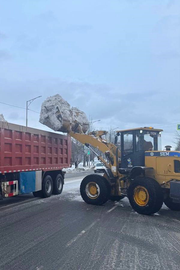 Специализированная техника расчищает от снега магистрали, внутриквартальные проезды и придомовые территории. Осуществляется вывоз снежных масс.