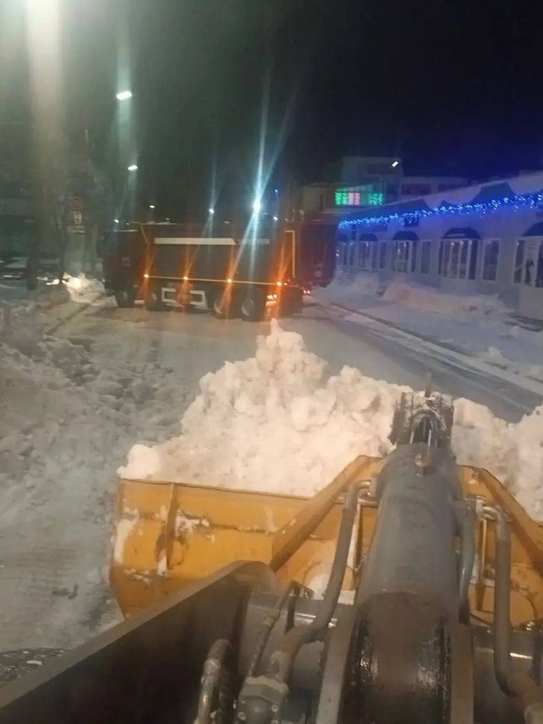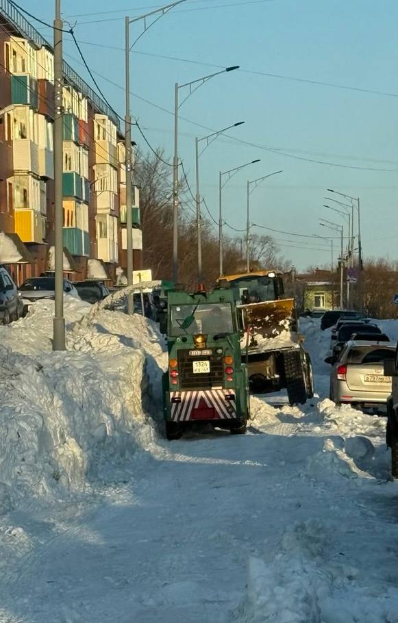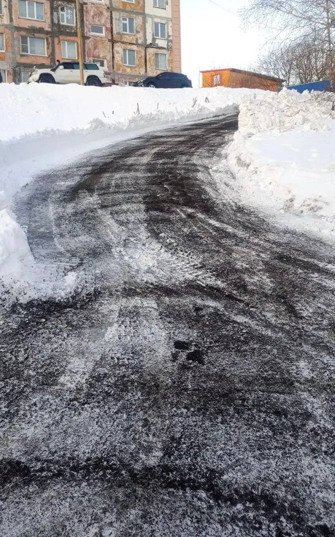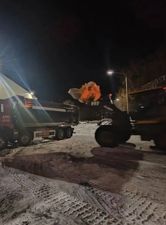 Ведутся комплексные работы: расширение проездов, снятие наката и наледи, вывоз снежных масс. Дороги обрабатываются песко‑соляной смесью.