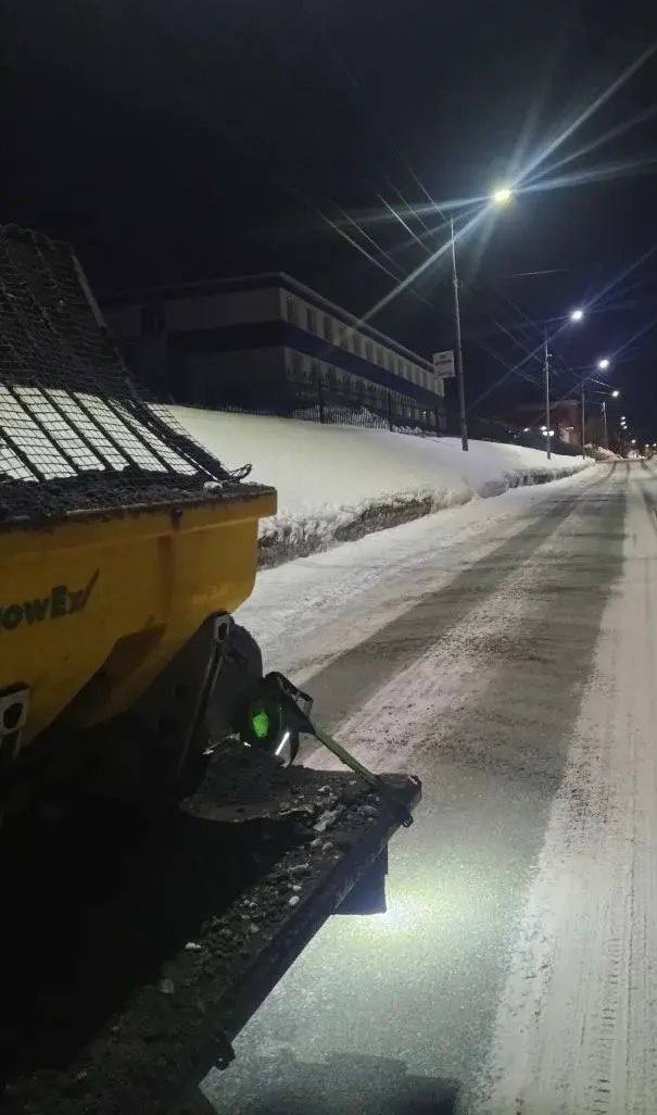 Также идёт очистка тротуаров и посыпка противогололёдными материалами.