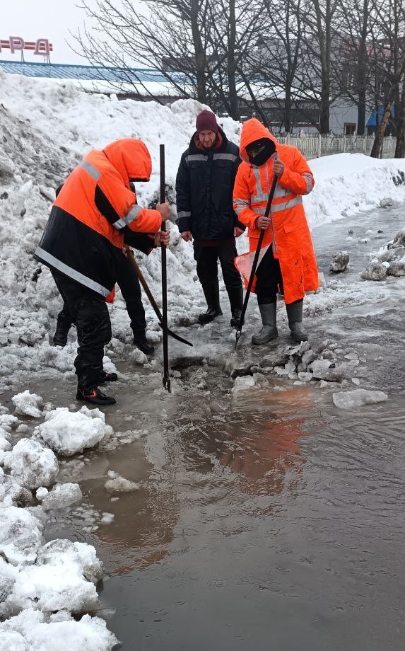 Бригады ручного труда расчищают ливневые канализации.