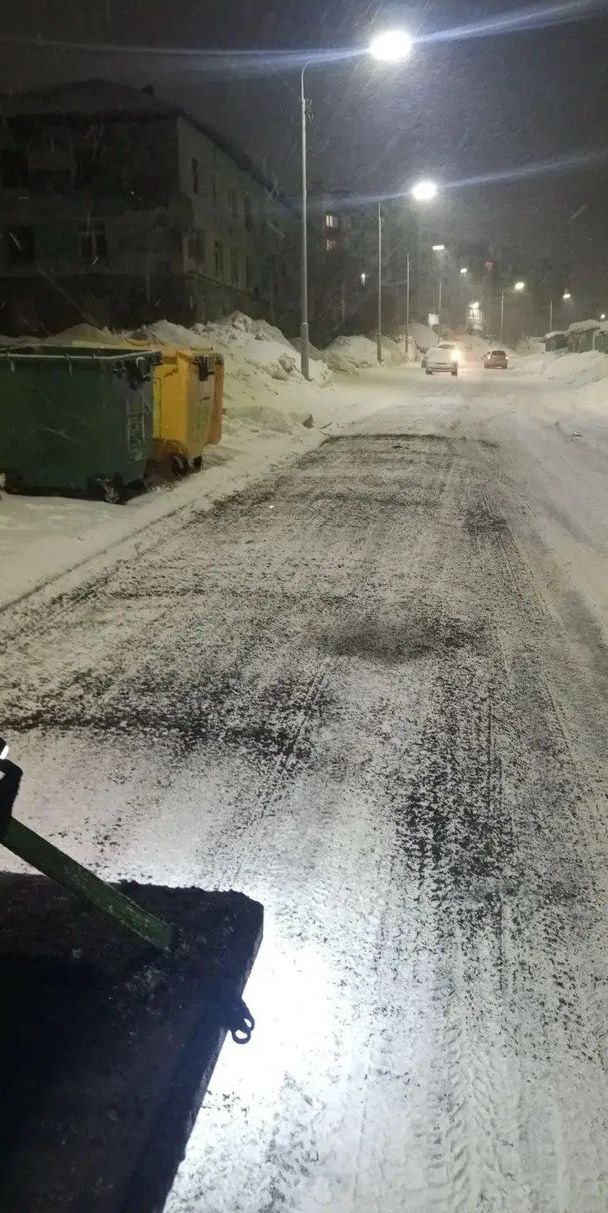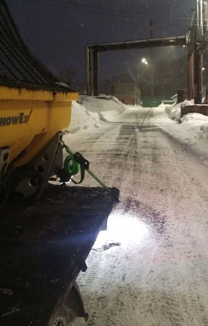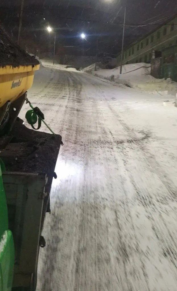 В течение дня рабочие снимают наледь, обрабатывают спуски и подъемы противогололедными материалами.