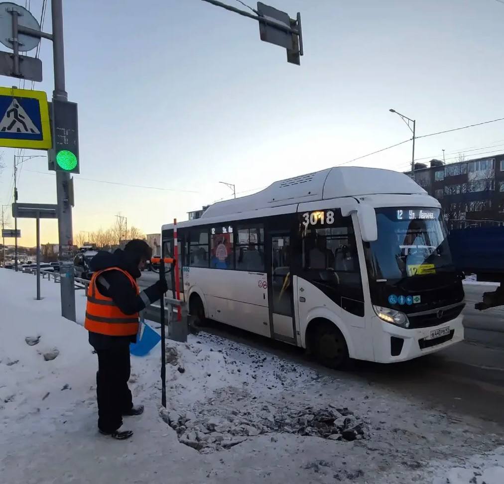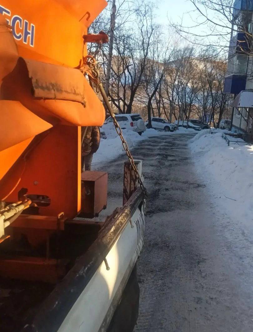Особое внимание уделяется удалению наледи, расширению проездов и обработке крутых спусков и подъемов.
