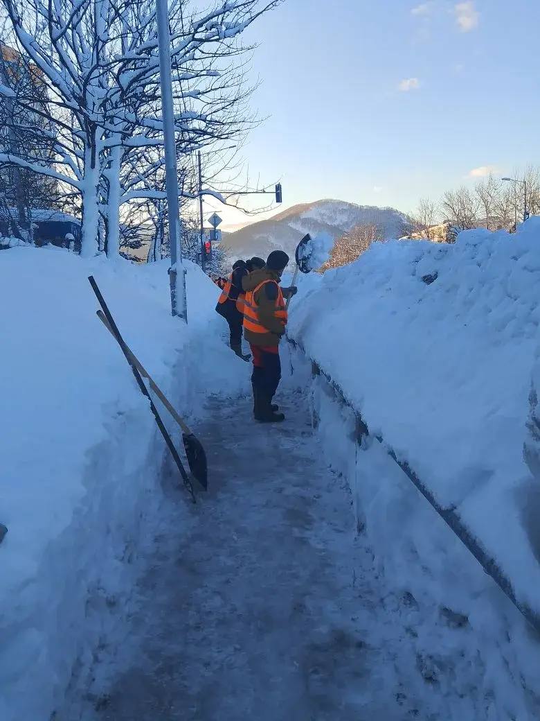 Ведутся работы по расширению дорог, убираются снежные валы, проводится обработка территорий песко‑соляной смесью, осуществляется вывоз снежных масс.