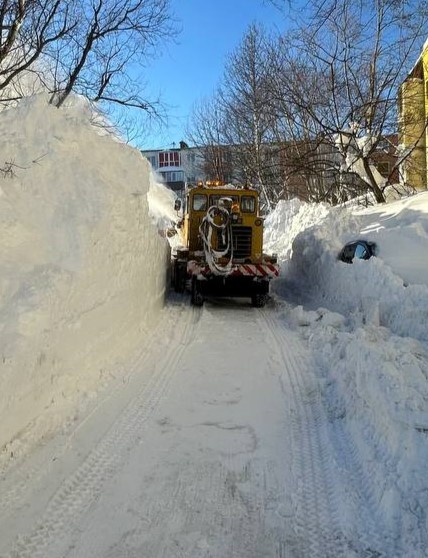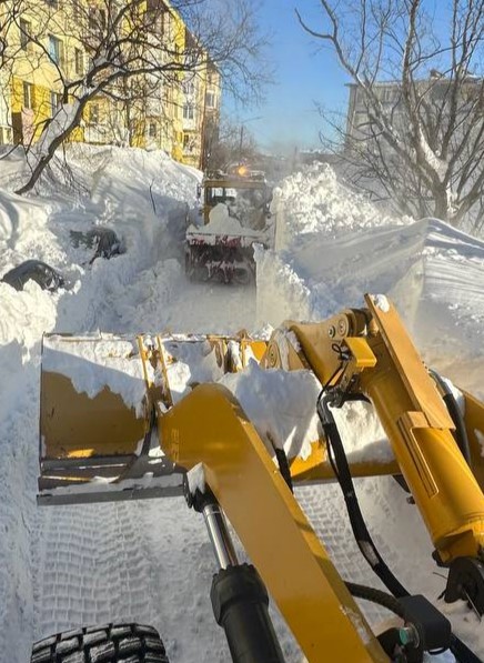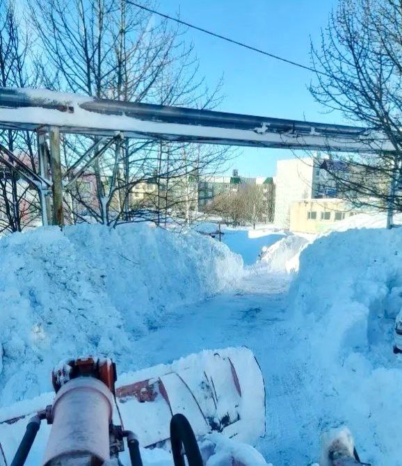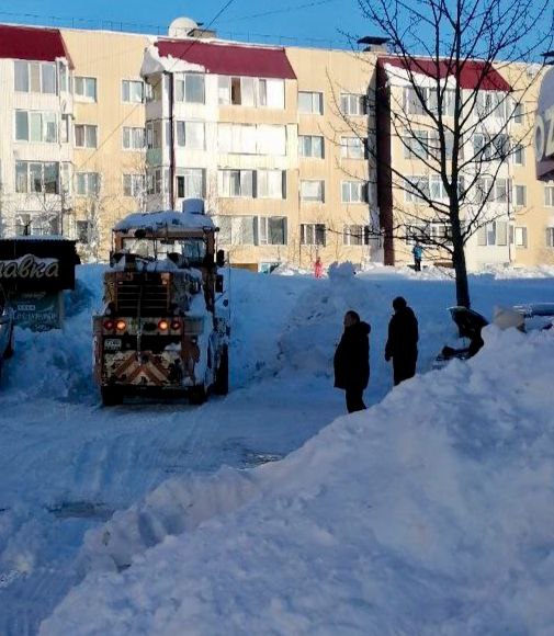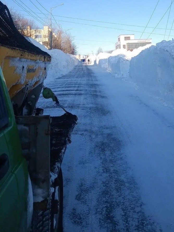Дорожные службы расчищают и расширяют внутриквартальные проезды и придомовые территории. Вывозят снег.