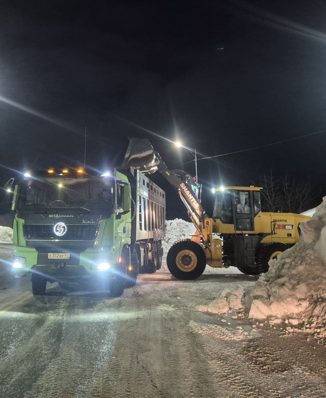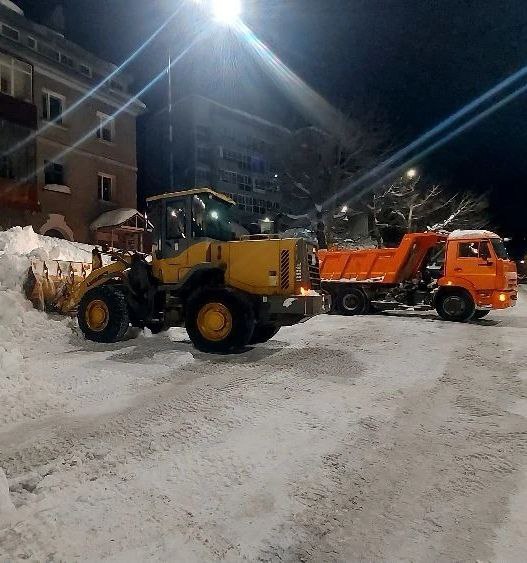 Основные работы по расширению и расчистке магистральных дорог выполняются в ночное время. Днём основное внимание уделяется расчистке внутриквартальных проездов. Параллельно с расчисткой проводятся работы по вывозу снежных масс.