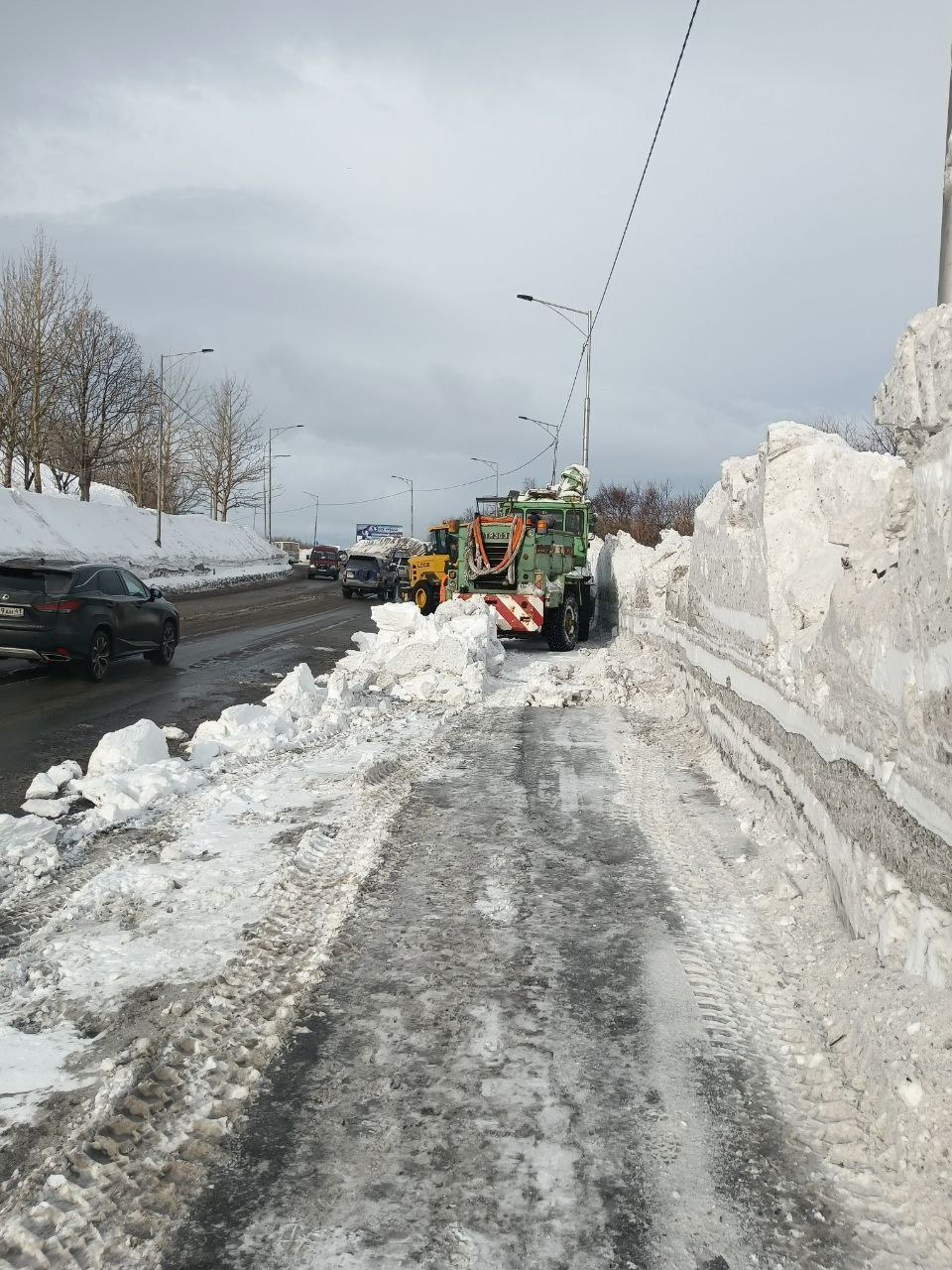 Дорожные службы расчищают и расширяют внутриквартальные проезды и придомовые территории, обрабатывают проезды песко-соляной смесью, вывозят снег.