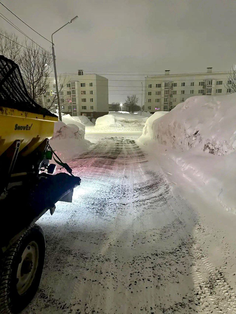 Дорожные службы в ночную смену и в течение дня продолжают расчистку внутриквартальных проездов и придомовых территорий. Проводят обработку противогололедными материалами.