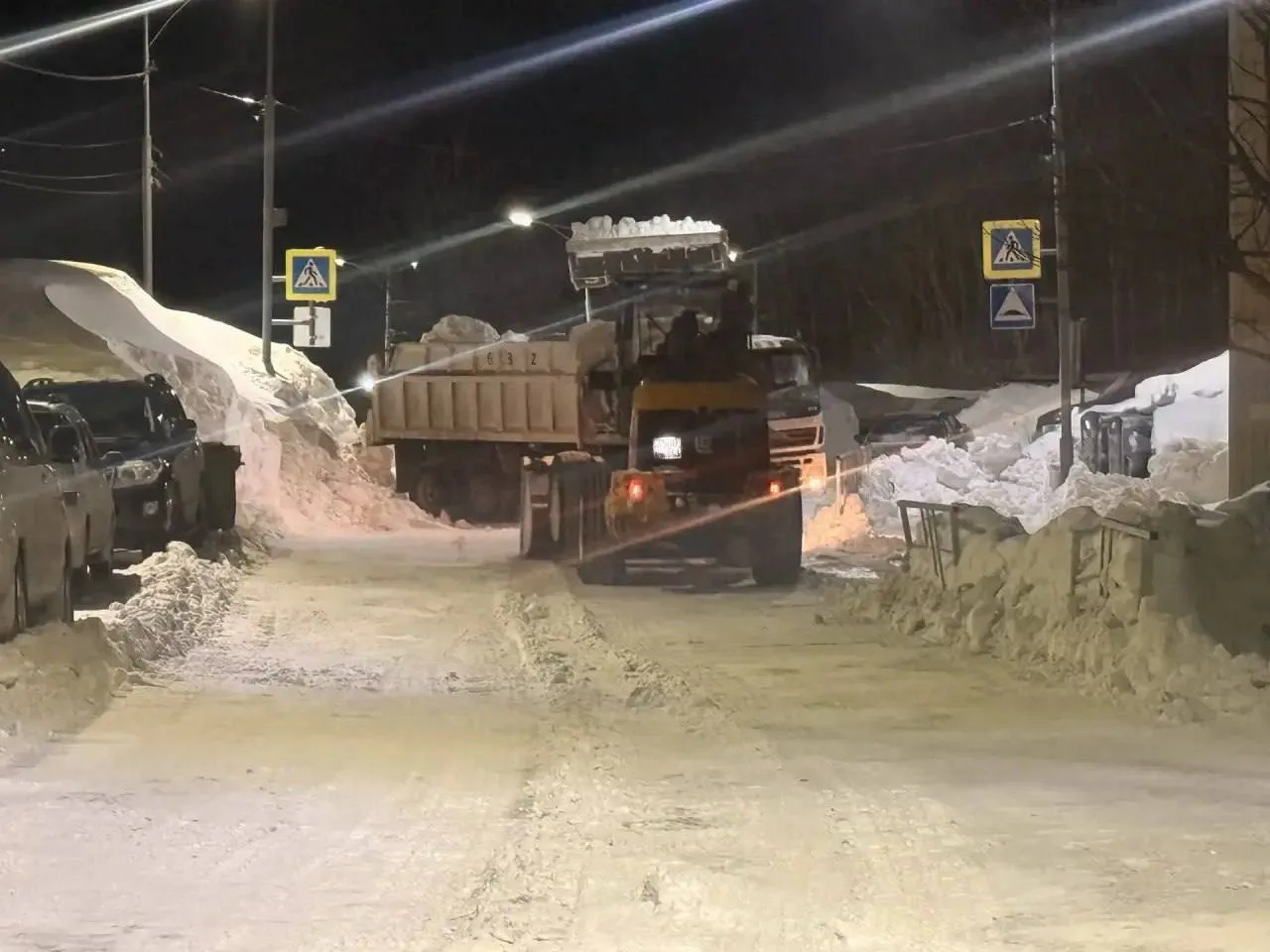 Дорожные службы ведут комплексную уборку: расчищают внутриквартальные проезды и придомовые территории от снега, а также обрабатывают проезды песко‑соляной смесью.