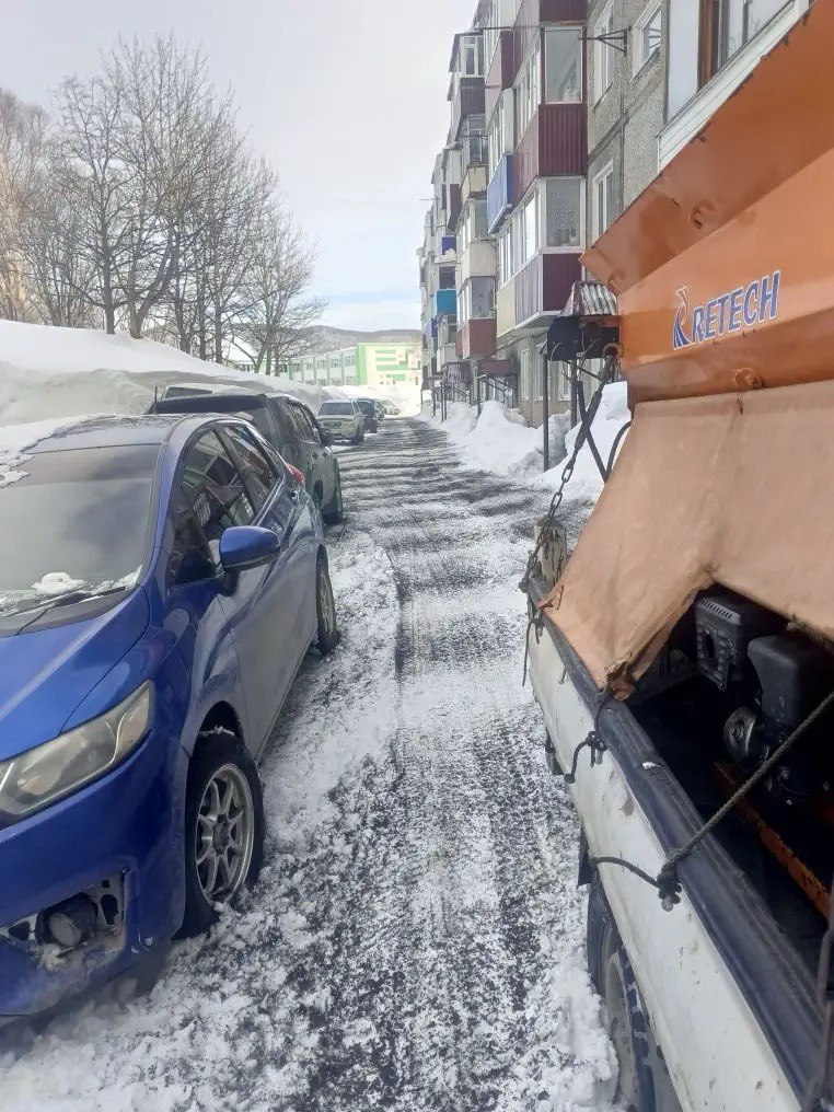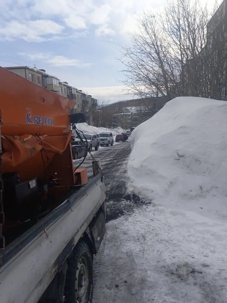 В Петропавловске-Камчатском специализированная техника продолжает мероприятия по расчистке и обработке противогололедными материалами магистральных дорог, внутриквартальных проездов, а также придомовых территорий.