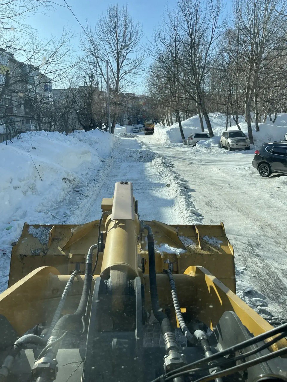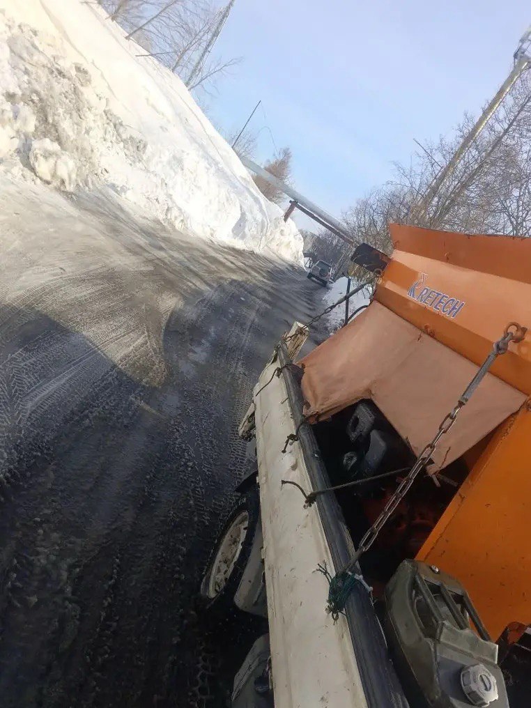 Подрядные организация снимают накат, расширяют дороги, а также обрабатывают территории противогололедными материалами.