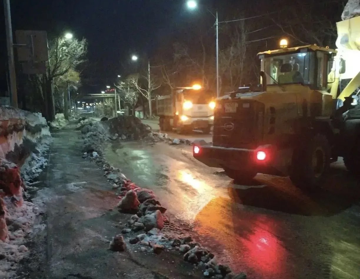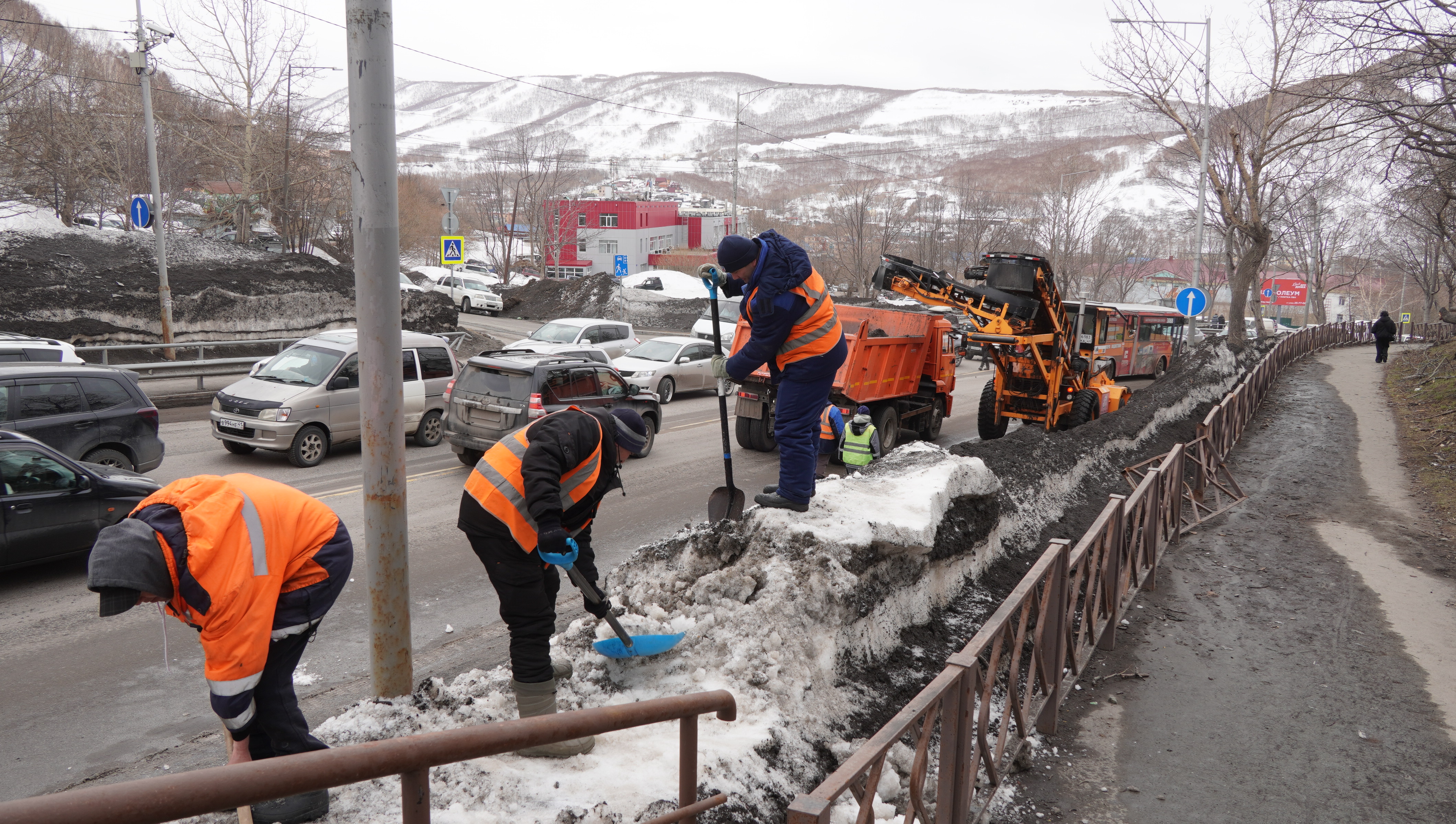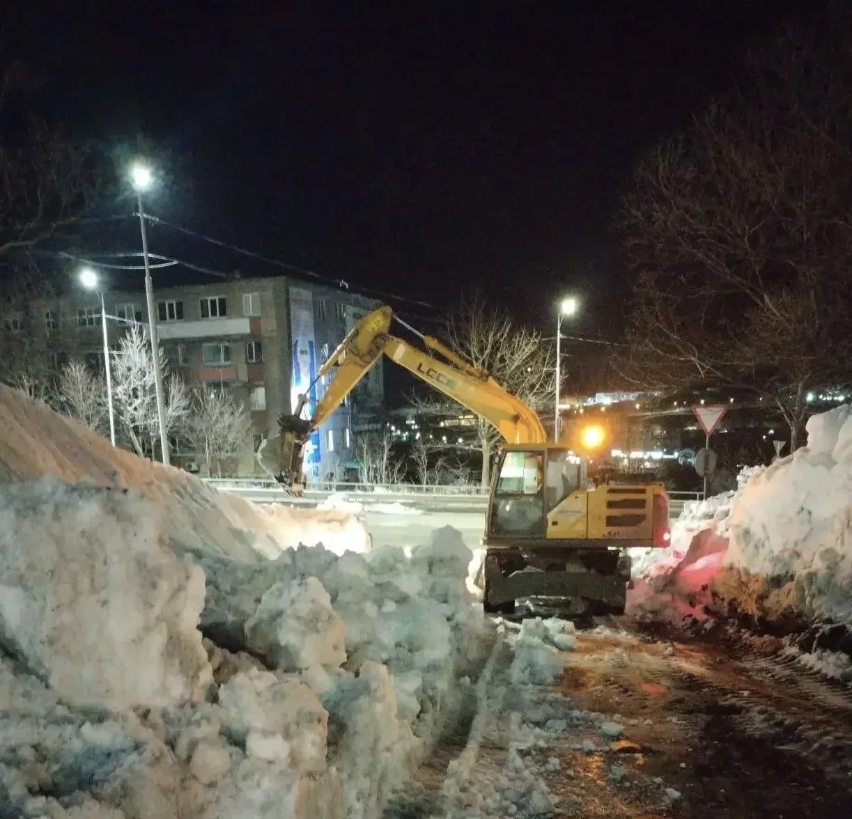 В ночную смену был выполнен вывоз снежных масс с улиц Максутова, Зеркальная, Владивостокская. Проведена очистка дорог от наледи на улицах Ленинградская, Озерновская коса и Набережная. Осуществлена обработка противогололёдными материалами улиц Озерновская коса, Ленинская, площади Щедрина, улиц Рябиковская, Океанская, Петропавловского шоссе и Индустриальной.