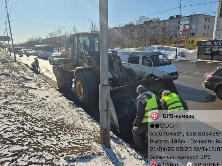 В ночную смену был выполнен вывоз снежных масс с пр. 50 лет Октября. Проведена очистка тротуаров на ул. Советская. Осуществлена обработка противогололёдными материалами ул. Озерновская коса, ул. Ленинская, пл. Щедрина, ул. Рябиковская, ул. Океанская, ул. Петропавловского шоссе и ул. Индустриальной.