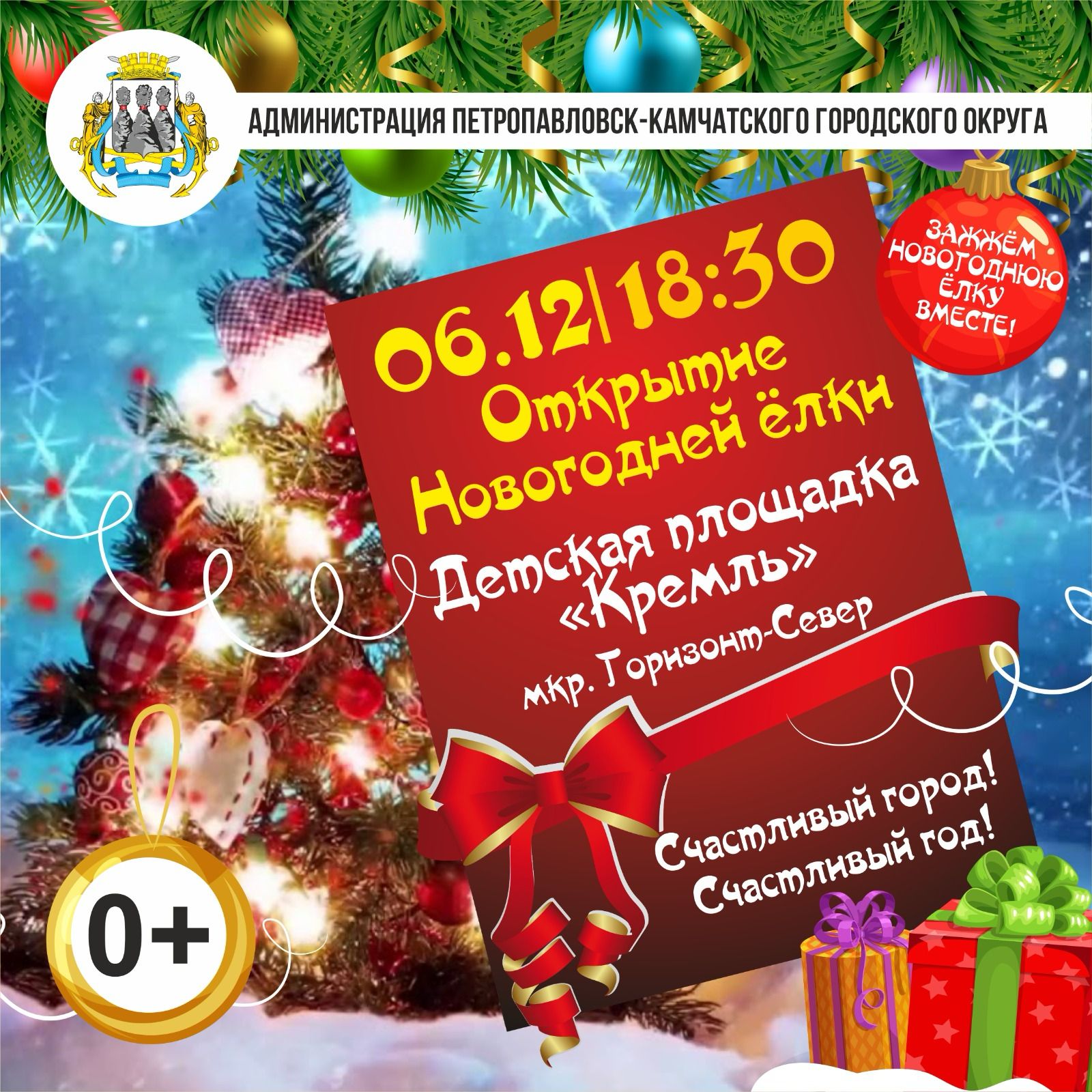 В Петропавловске-Камчатском в связи со сложными погодными условиями принято решение перенести открытие двух новогодних ёлок в микрорайонах, запланированных на сегодня.