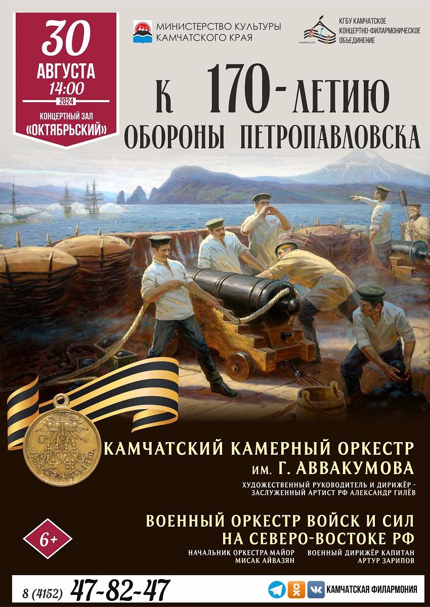 30 августа Камчатское концертно-филармоническое объединение приглашает на мероприятие, посвященное празднованию 170-летия героической обороны Петропавловска.