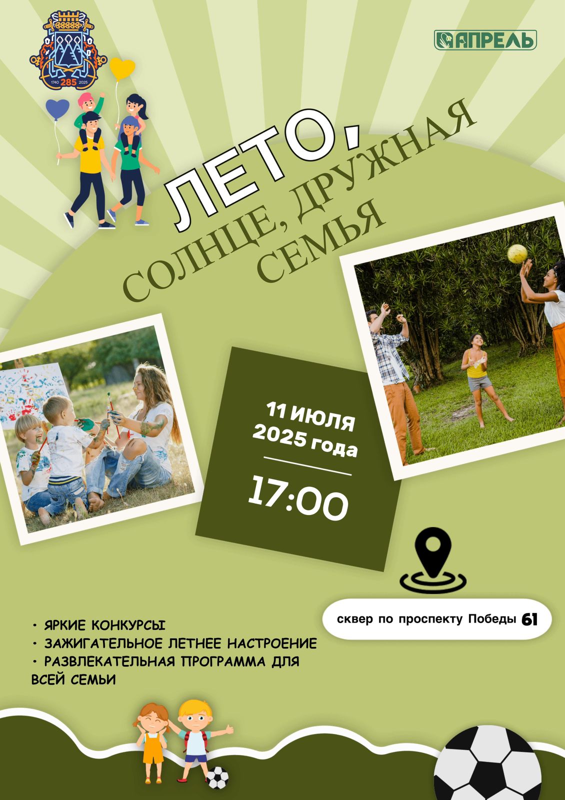 17:00 в сквере по проспекту Победы, 61 развлекательная программа для всей семьи «Лето, солнце, дружная семья»