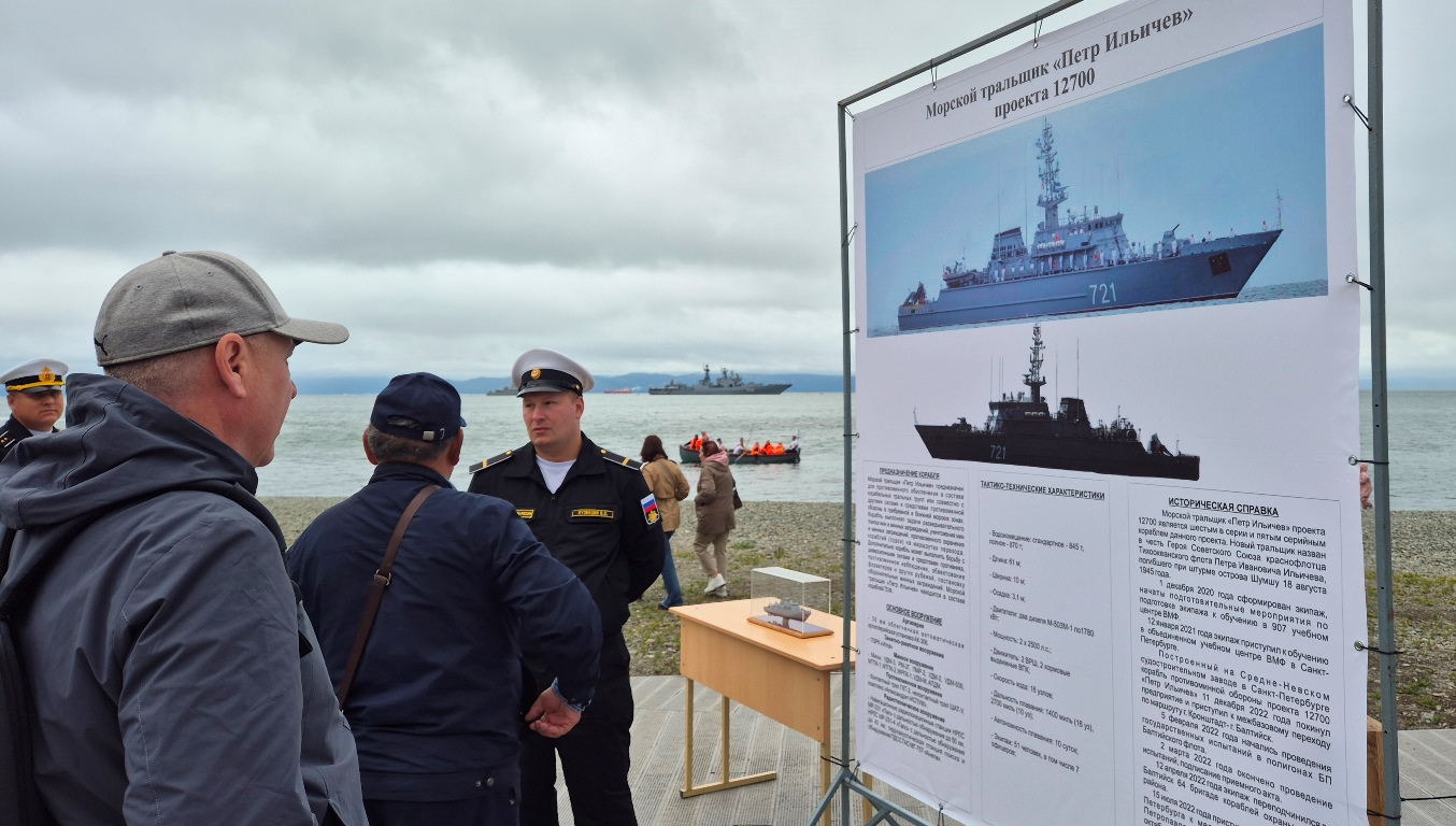 Также до 19:00 проходит экскурсия по военному кораблю (большой десантный корабль "Ослябя") по ул. Озерновская коса, д. 11.