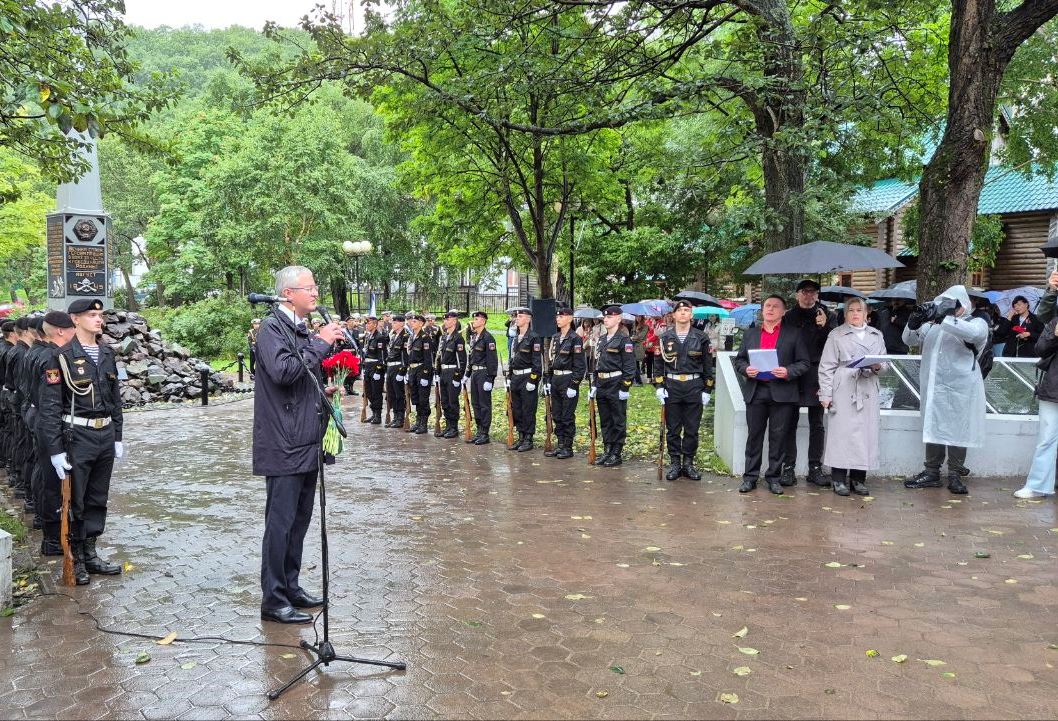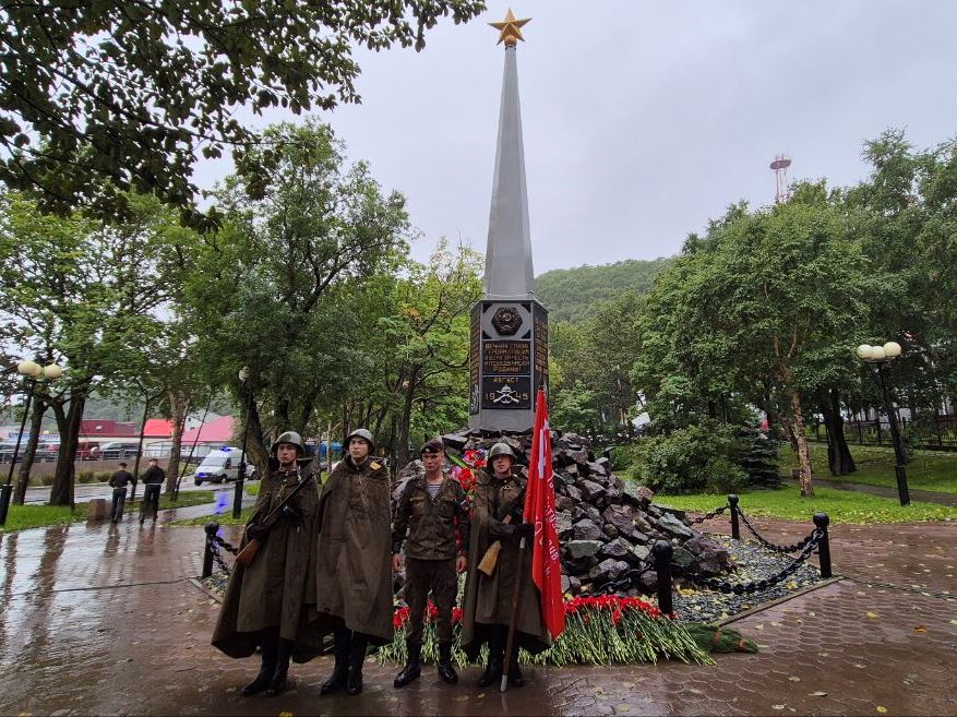 В Петропавловске-Камчатском в сквере Свободы состоялось торжественное мероприятие «В сердце вечно живые», посвящённое 80-летию со дня начала Курильской десантной операции.