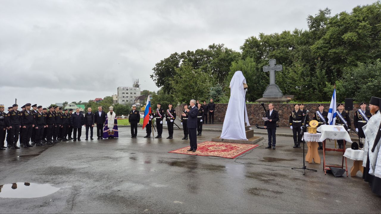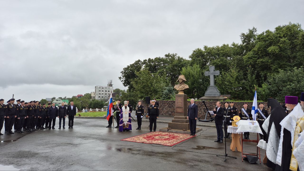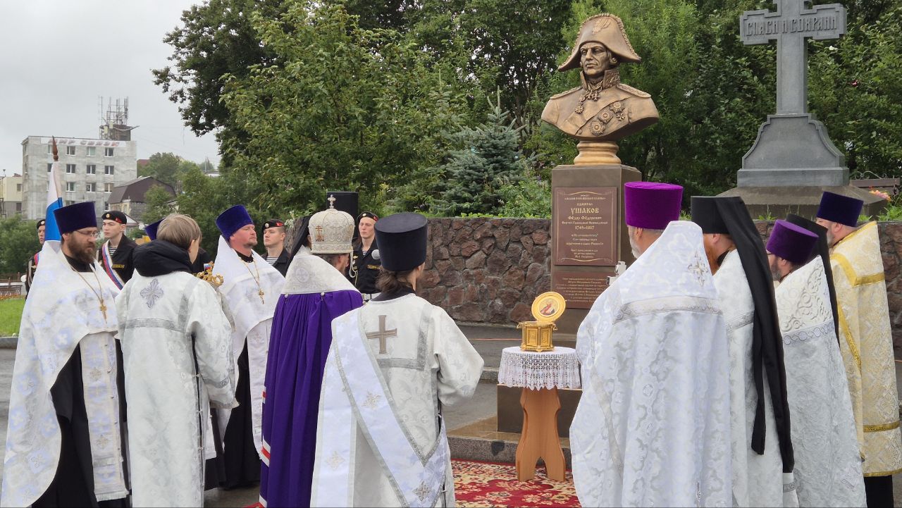 Торжественная церемония открытия бюста великого русского флотоводца и святого Русской Православной Церкви – адмирала Фёдора Ушакова состоялась на территории Морского собора в честь Архистратига Божия Михаила в Петропавловске-Камчатском.
