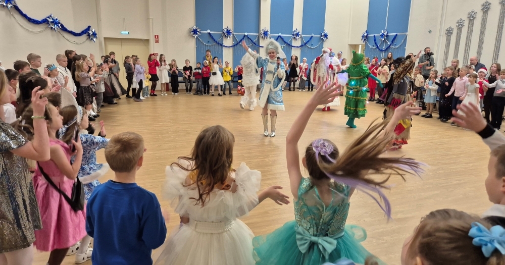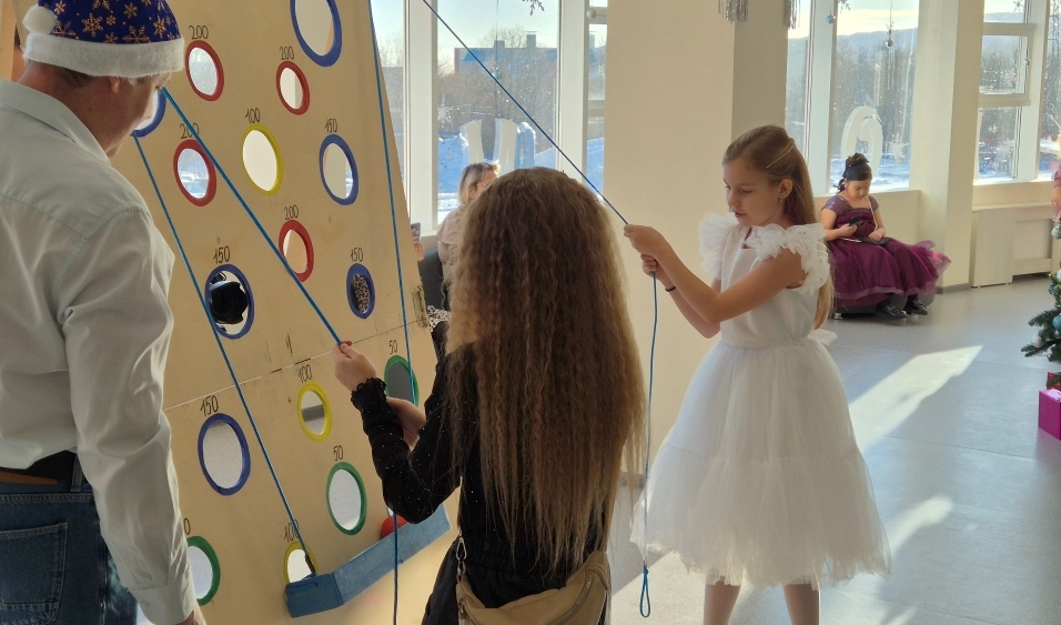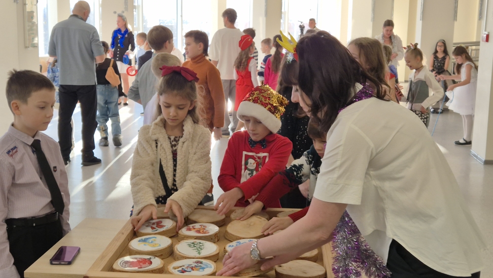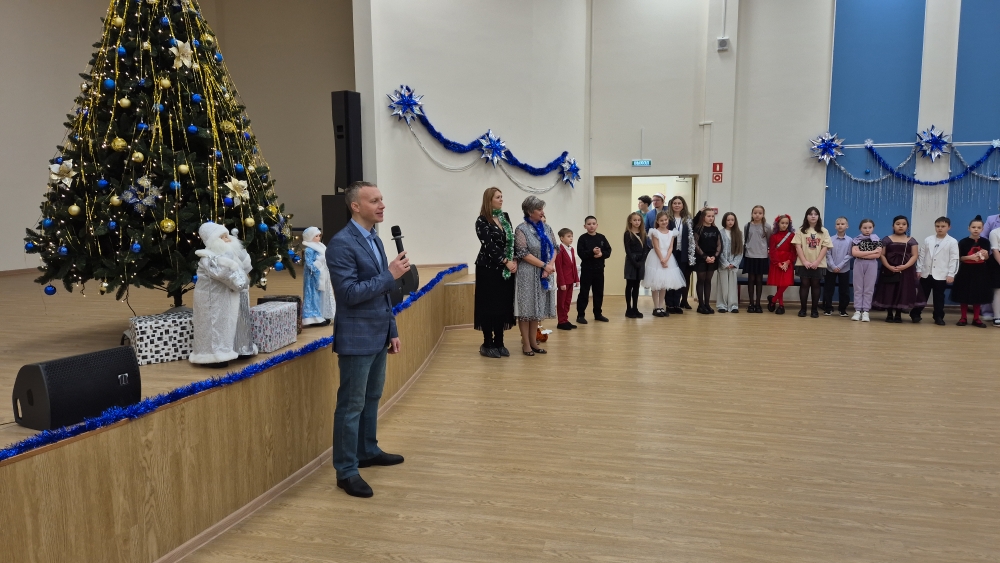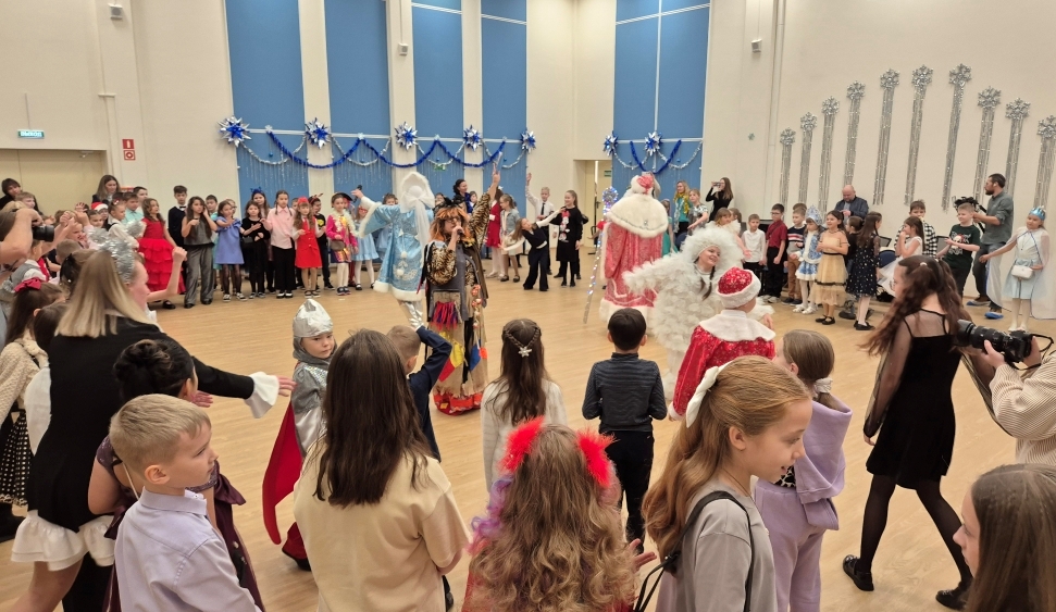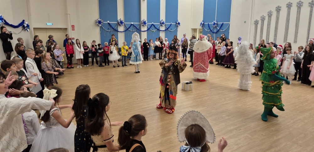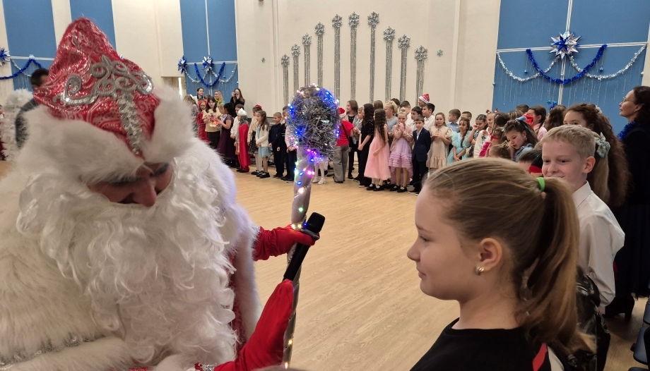 Для школьников была организована интерактивная творческая программа с участием сказочных персонажей, каждый ребенок получил сладкий подарок от Деда Мороза.