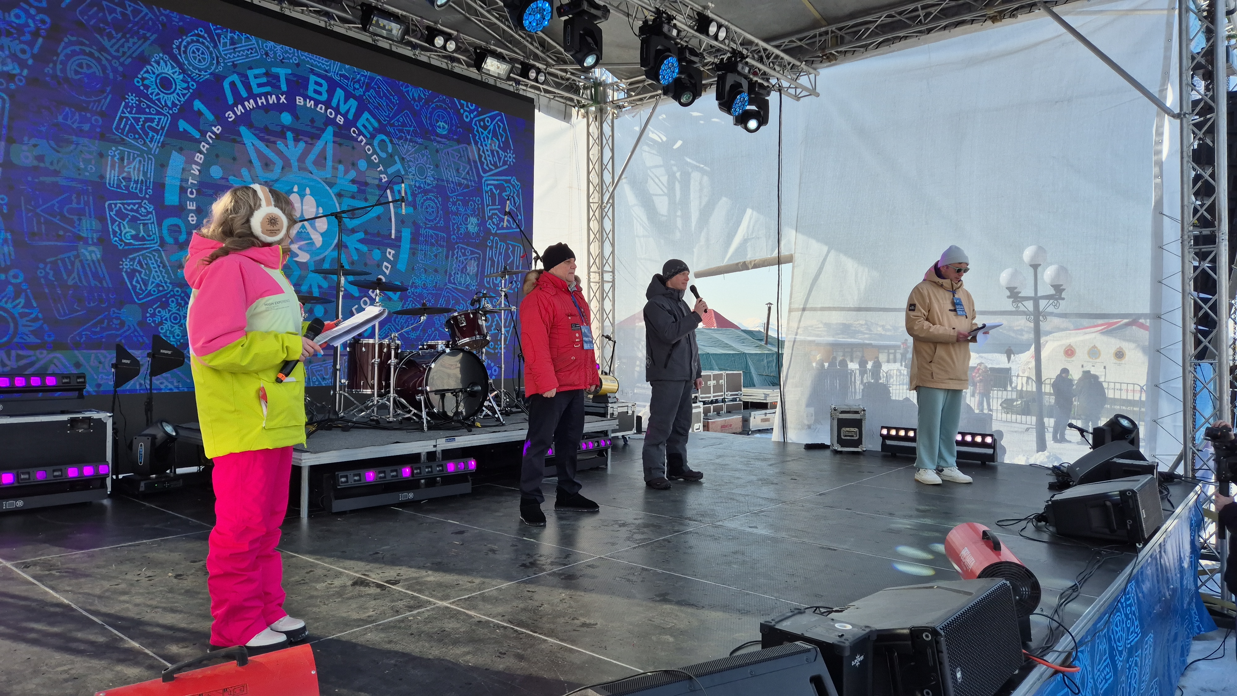 На сцене были награждены участники соревнований по борьбе на снегу, ездовому спорту, фристайлу. Победили и призеры соревнований были награждены кубками, медалями и дипломами соответствующих степеней, а также памятными подарками.