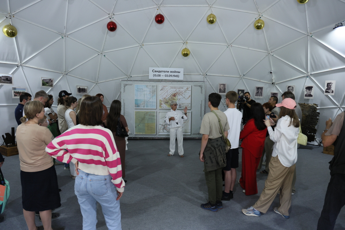 Выставка «Свидетели войны. Курильская десантная операция» проходит в шатре возле Култучного озера. Она продлится по 15 сентября.