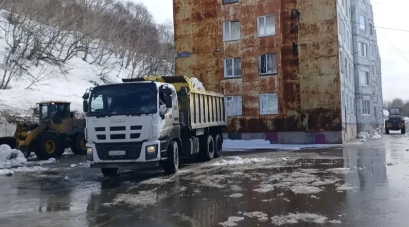 Также проводились работы по обработке противогололедными материалами ул. Пограничная, ул. Солнечная, ул. Владивостокская, пр. Циолковского, ул. Озерновская коса, ул. Ленинградская, ул. Ленинская, пл. Щедрина, ул. Рябиковская, ул. Океанская, ул. Петропавловское шоссе, ул. Индустриальная, ул. Ключевская, ул. Советская.