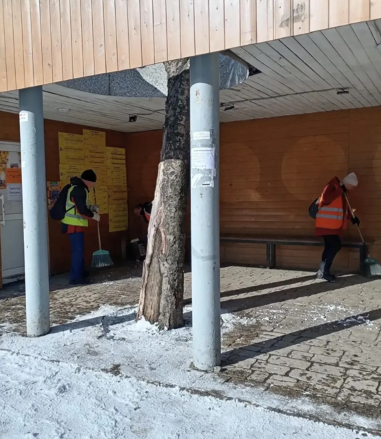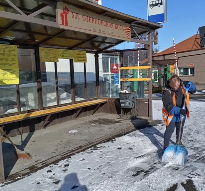 Бригады ручного труда убирали автобусные остановки и прилегающие к ним территории.