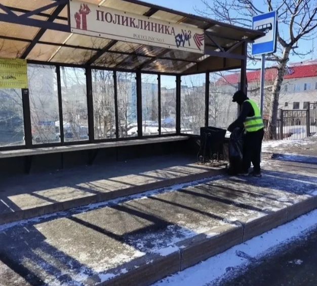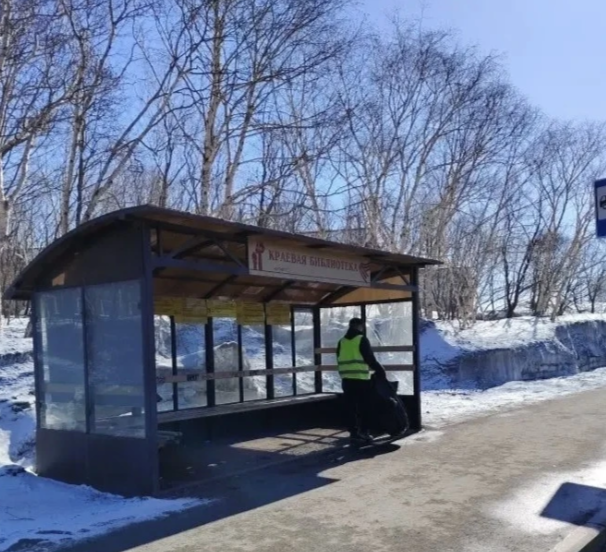 Ежедневно проводятся работы по уборке автобусных павильонов и прилегающих к ним территорий.