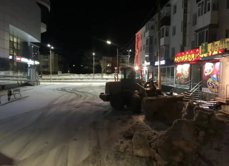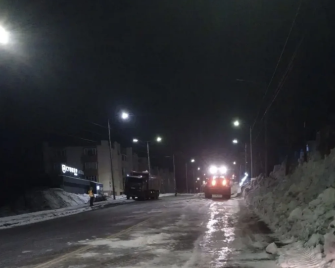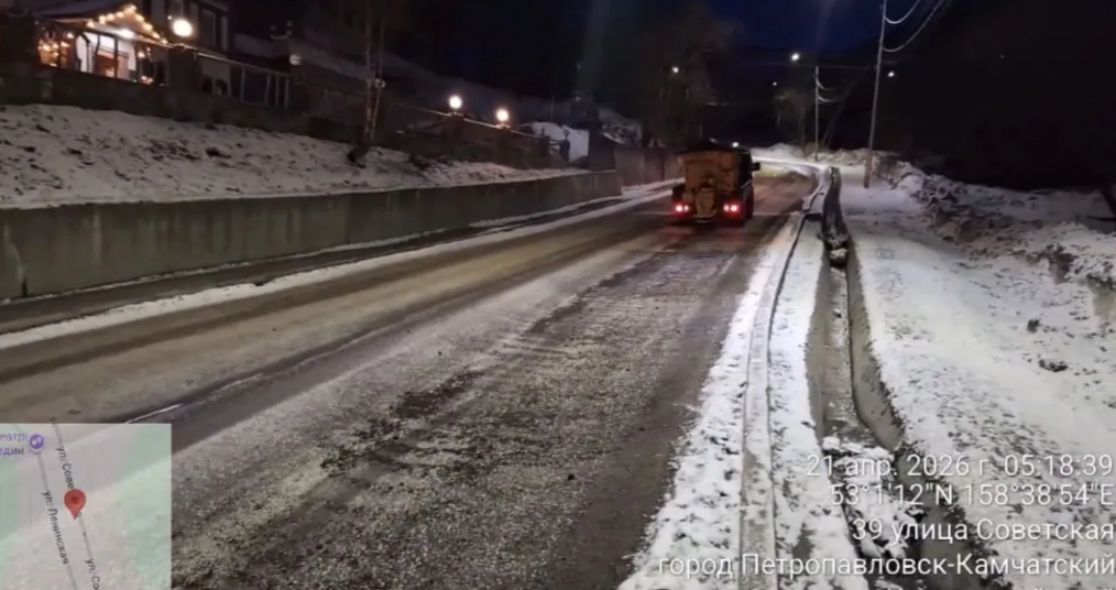 В ночную смену был выполнен вывоз снежных масс с пр. 50 лет Октября. Проведена очистка тротуаров на ул. Советская. Осуществлена обработка противогололёдными материалами ул. Озерновская коса, ул. Ленинская, пл. Щедрина, ул. Рябиковская, ул. Океанская, ул. Петропавловского шоссе и ул. Индустриальной.