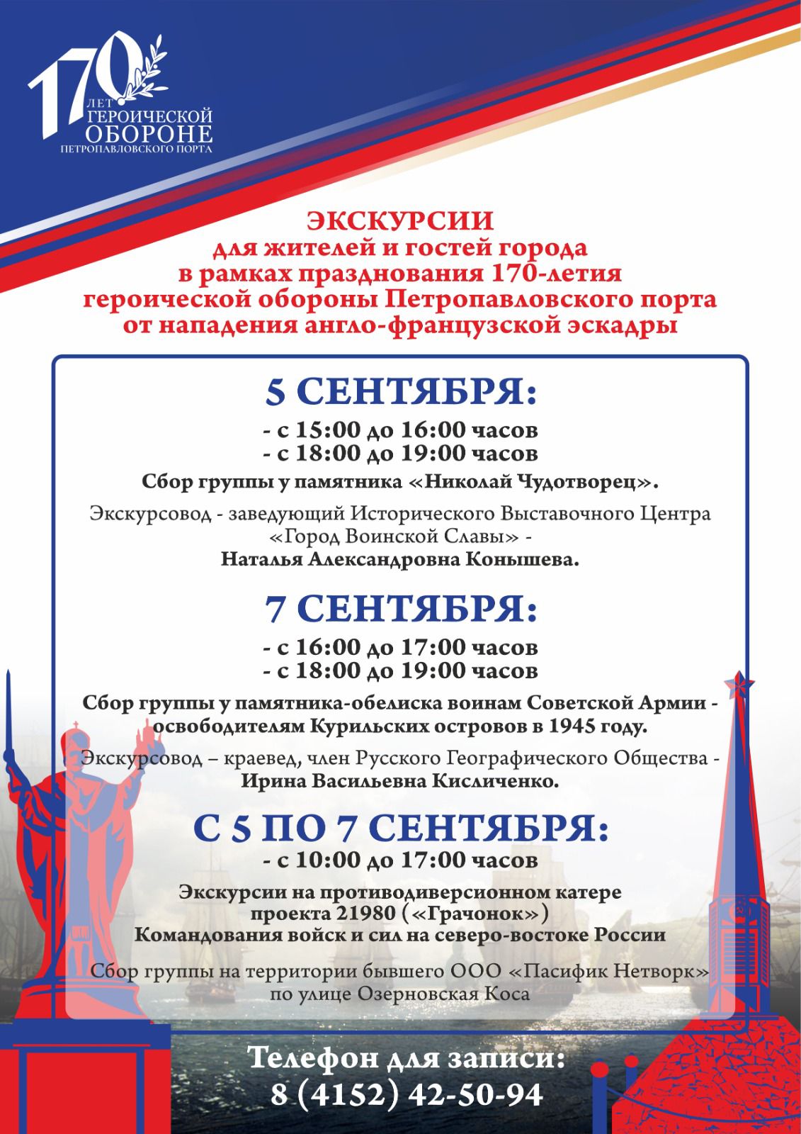 Экскурсии приурочены к 170-летию со дня героической обороны Петропавловского порта от нападения англо-французской эскадры в 1854 году.