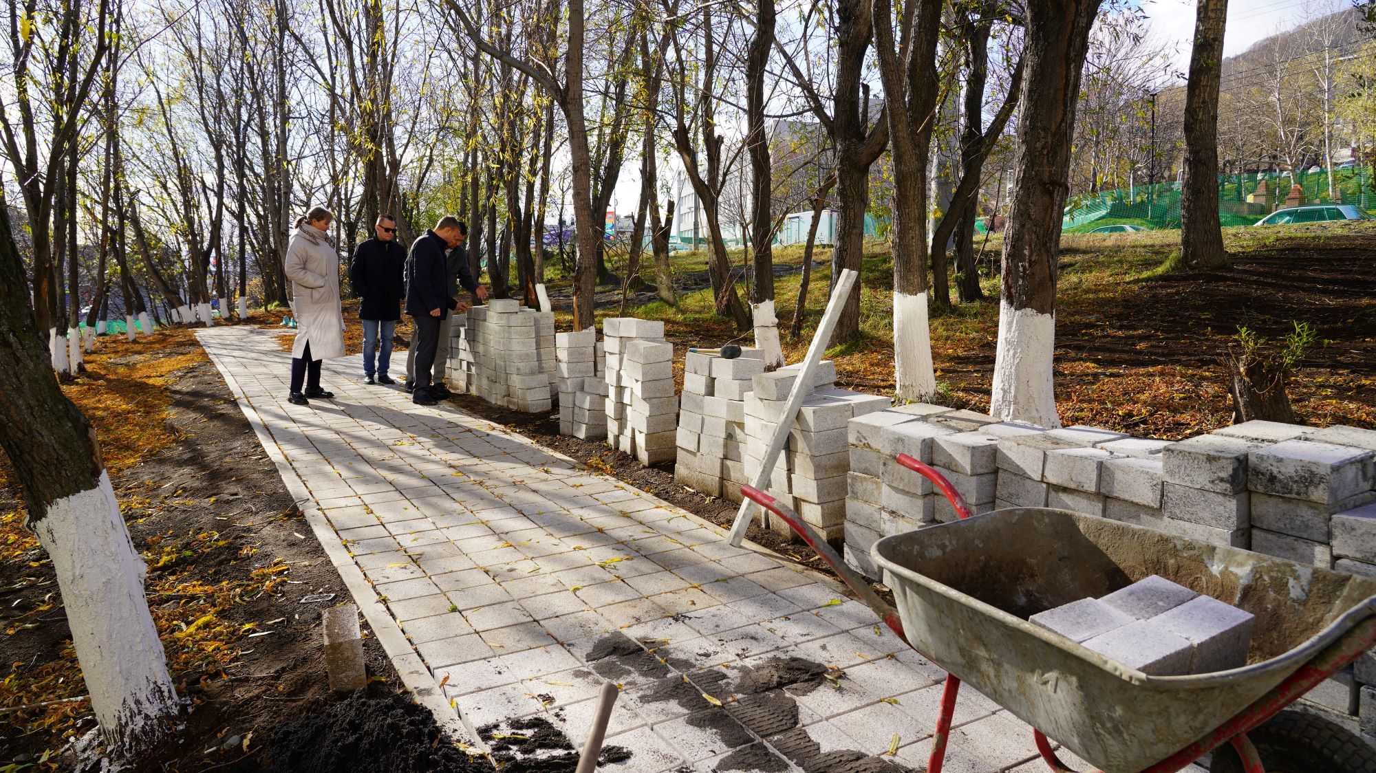 Исполняющий полномочия Главы Петропавловска-Камчатского Евгений Беляев проверил ход работ в сквере на ул. Ленинградская, 100, который благоустраивается в этом году в рамках федерального проекта «Формирование комфортной городской среды».