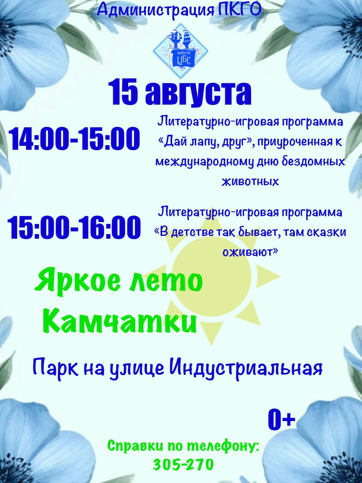 14:00 – литературно-игровая программа «Дай лапу, друг», приуроченная к международному дню бездомных животных в парке по ул. Индустриальная;