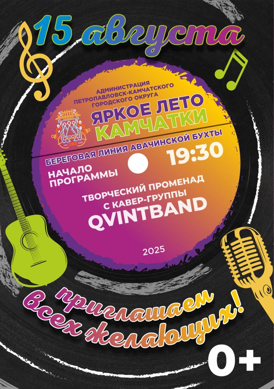 19:30 – выступление кавер-группы «QVINTBAND» на береговой линии Авачинской бухты.