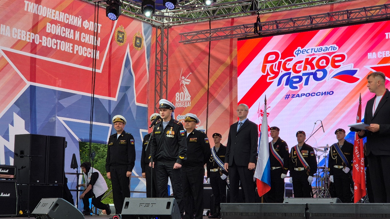 Мультижанровый творческий фестиваль «Русское лето. ZaРоссию» и агитационно-пропагандистская акция «Сила в Правде – 2025» официально открылись для всех гостей в 14:00. С приветственным словом к участникам обратились командующий Войсками и силами на Северо-Востоке Александр Юлдашев, Герой России Виталий Нарушевич и губернатор Камчатского края Владимир Солодов.