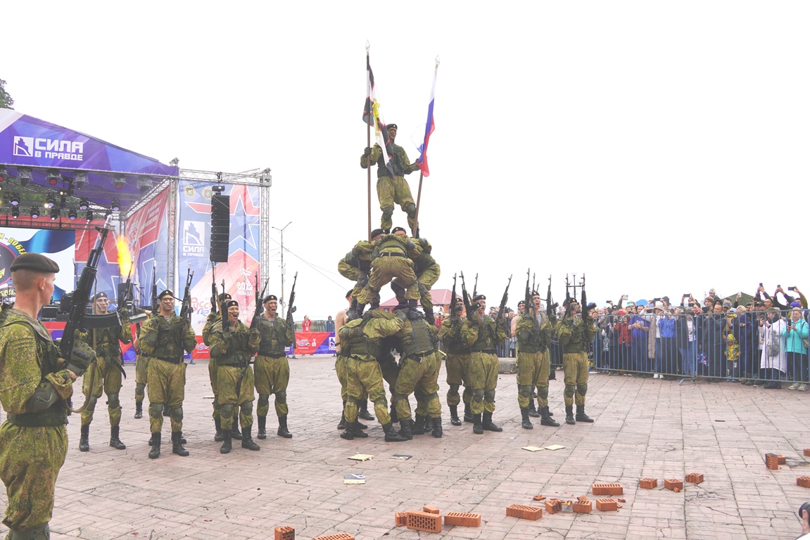 У главной сцены прошли показательные выступления 40-й отдельной гвардейской Краснодарско-Харбинской дважды Краснознаменной бригады морской пехоты, награждённой орденом Жукова.