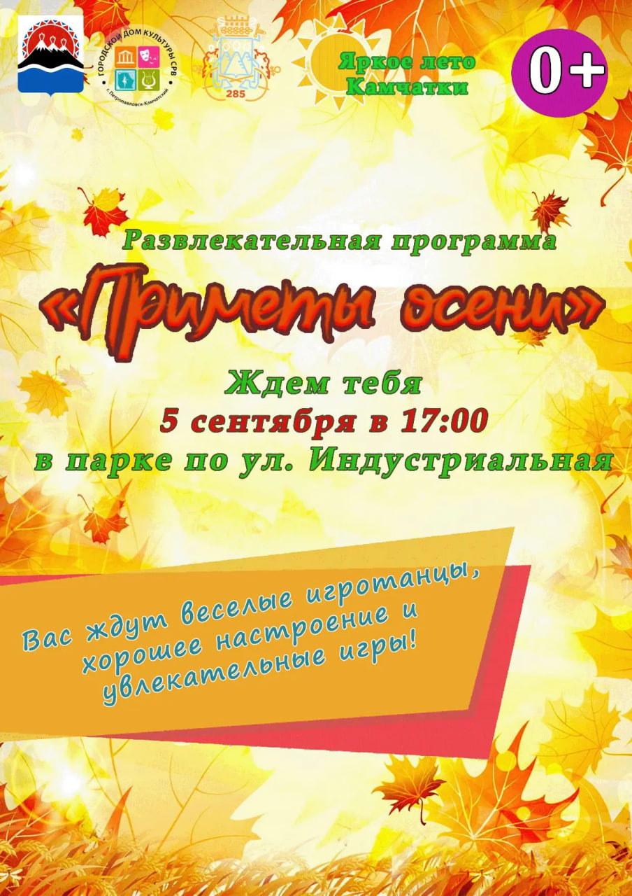 · 17:00 – развлекательная программа «Приметы осени» в парке отдыха по ул. Индустриальная;