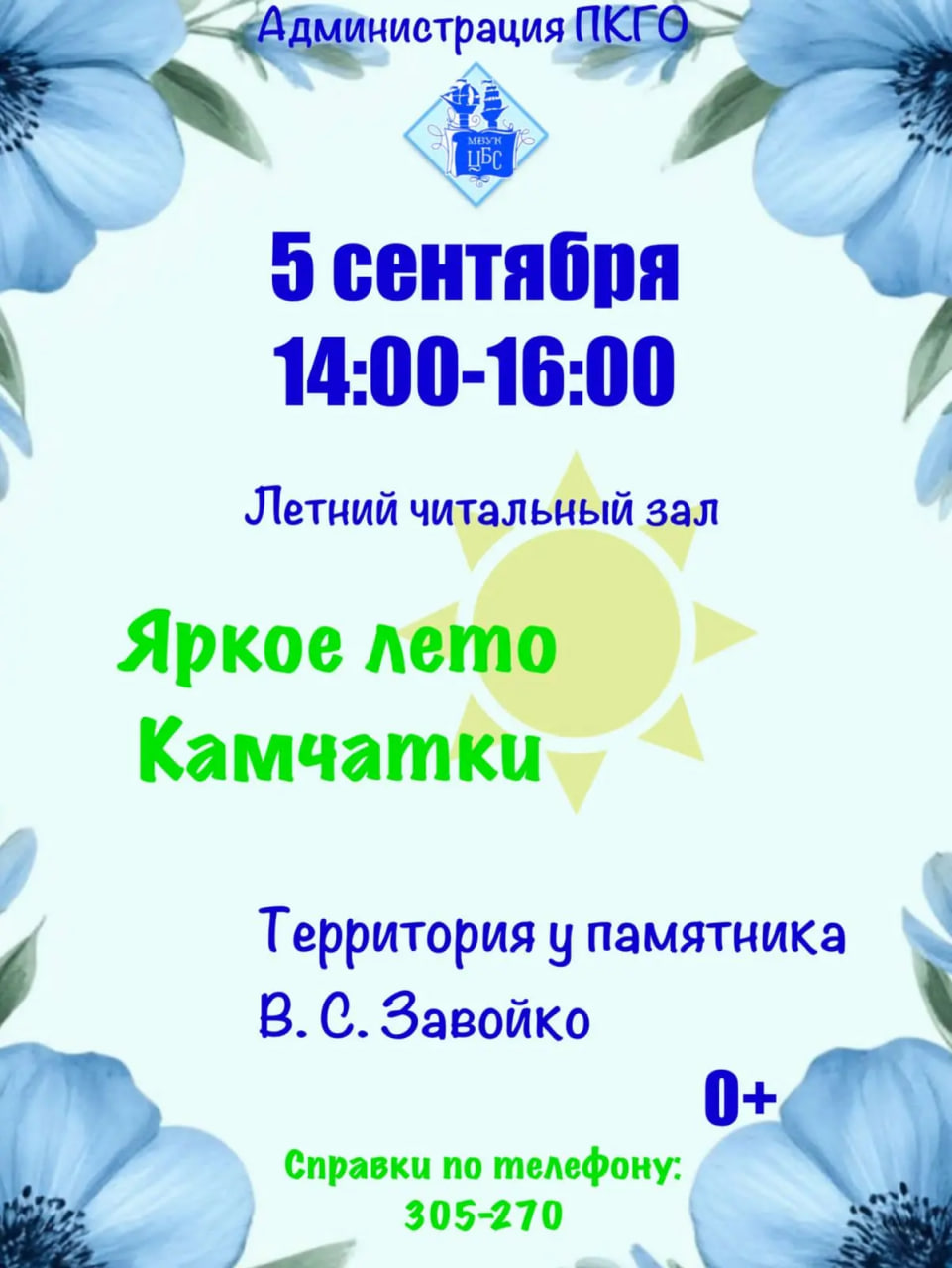 · 14:00 – читальный зал на территории у памятника В.С. Завойко;