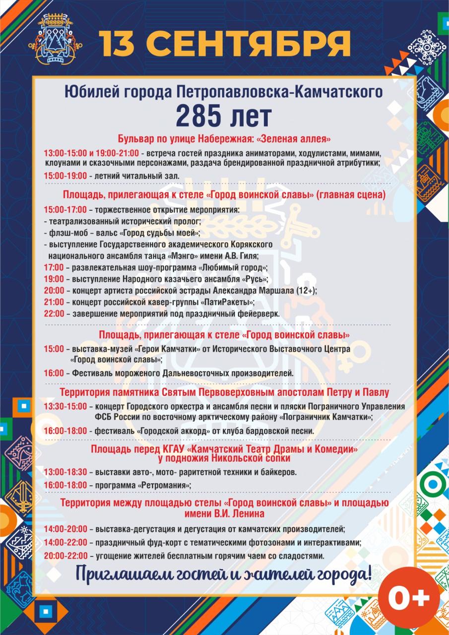 Программа мероприятий празднования 285-летия Петропавловска-Камчатского