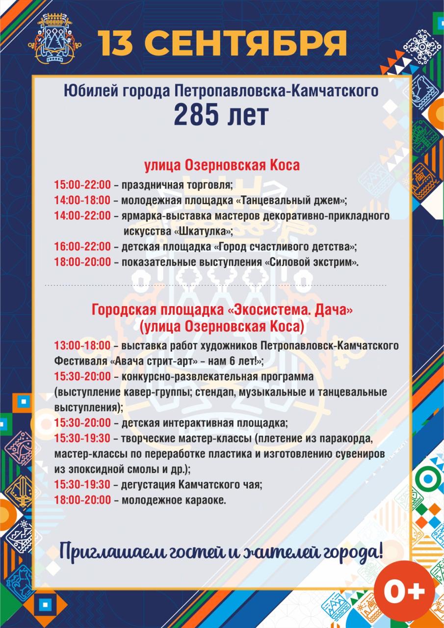 В Петропавловске-Камчатском 13 сентября в честь 285-летия города для жителей и гостей краевой столицы будет организована насыщенная культурная программа.