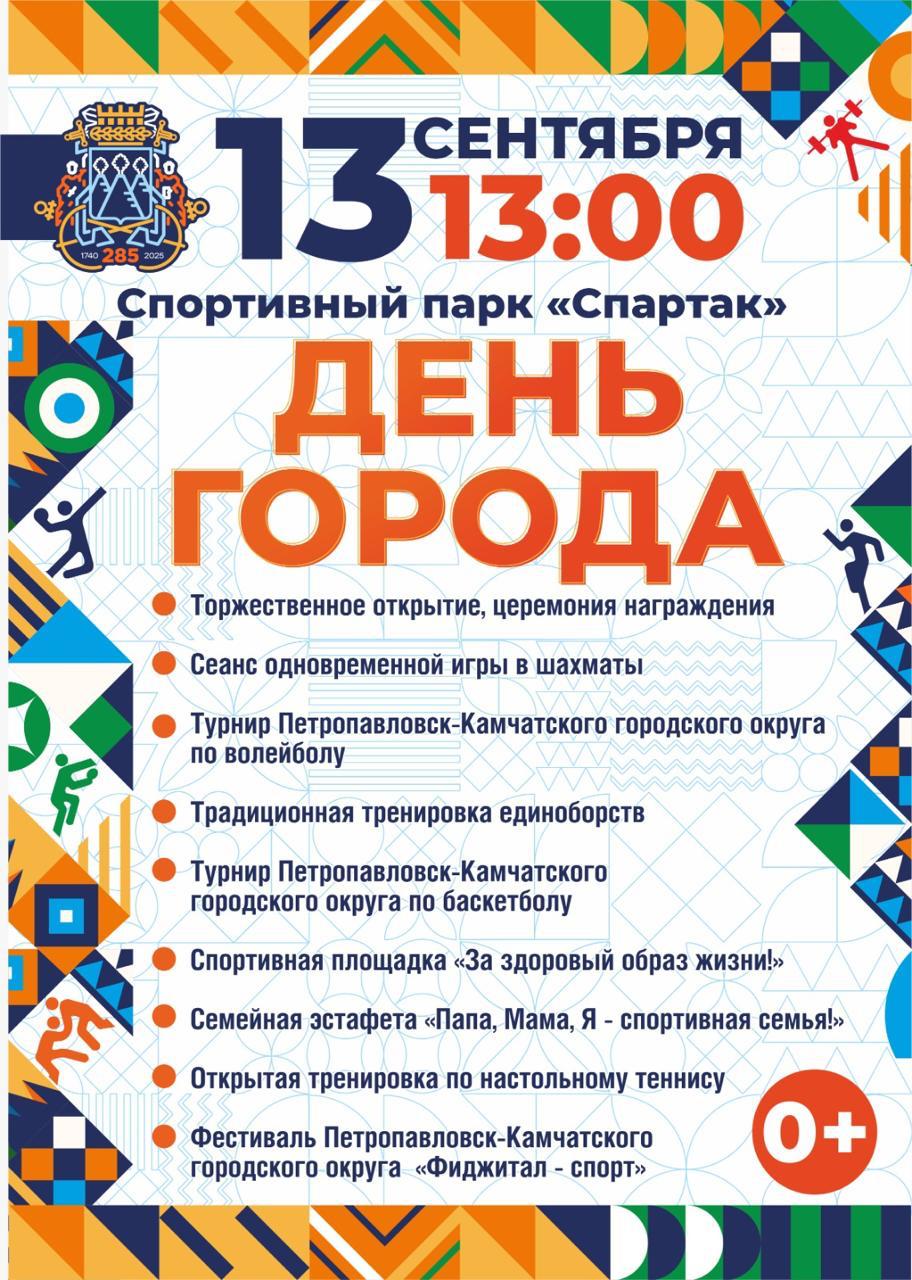 14:00 – фестиваль Петропавловск-Камчатского городского округа фиджитал - спорта (единоборства, футбол, баскетбол);